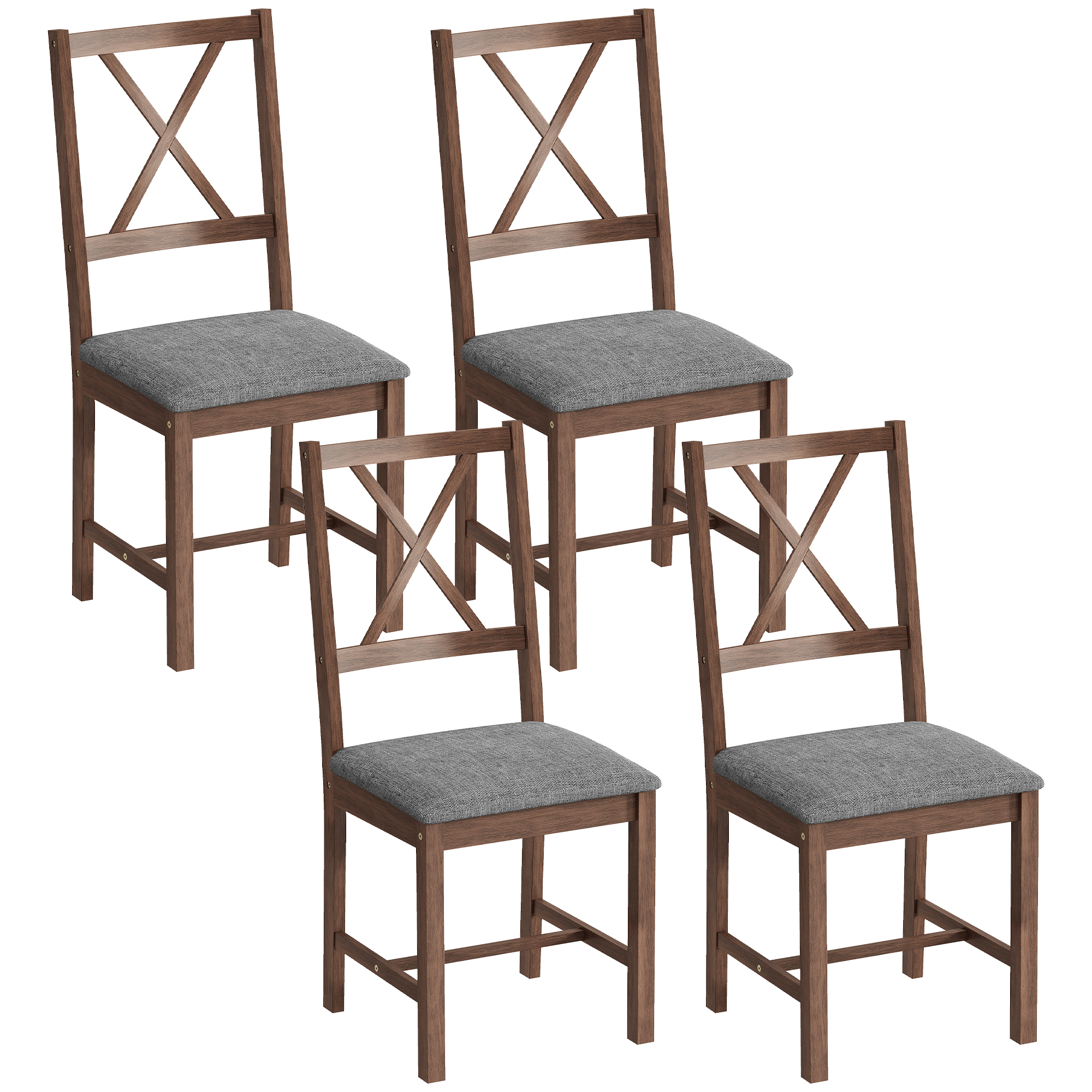 Long dinners can become a test of endurance on flimsy, uncomfortable chairs. Family gatherings feel cut short when everyone is eager to stand up. Elevate these moments with the [BRAND NAME] set of four dining chairs. Its solid rubberwood frame offers reliablility while the X-shaped back and padded seat provide lasting comfort. These kitchen chairs don't just fill a space; they creates a welcoming and stylish heart for your home.