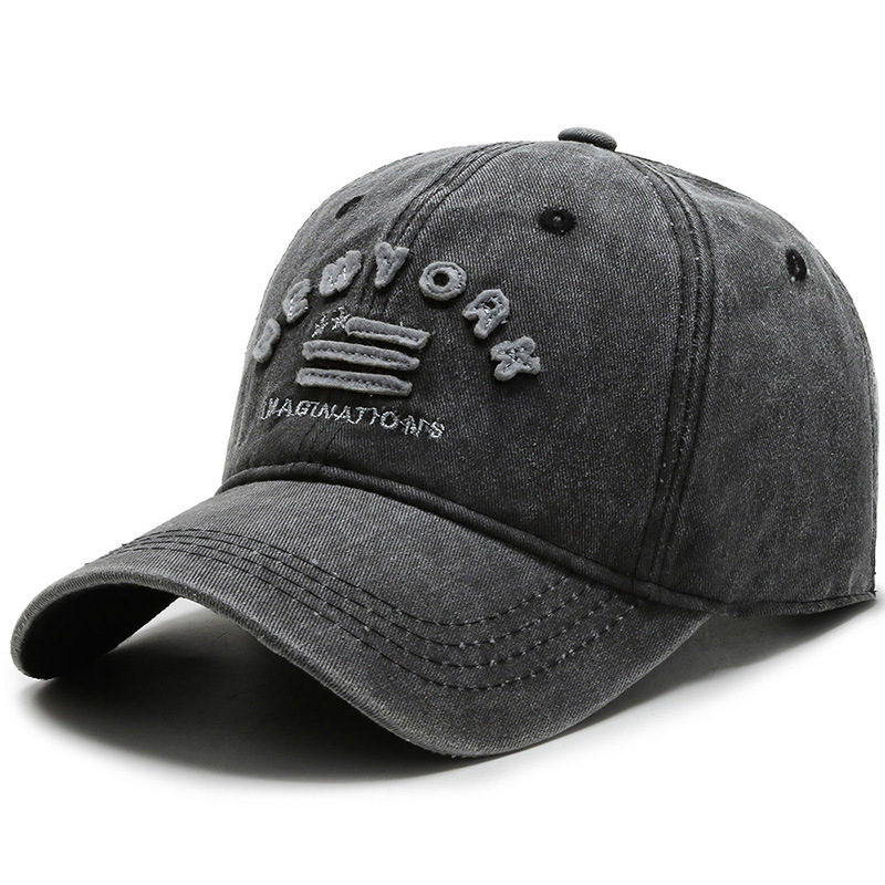 Spring And Autumn Retro Hong Kong Style Washed Cotton Letter Baseball