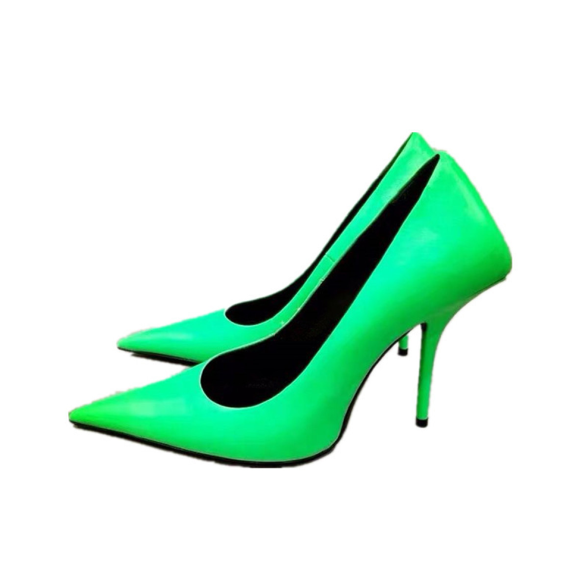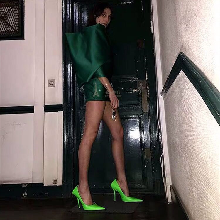 Spring New Net Red Ins Fluorescent Green Pointed Sexy High Heels Commuter Shallow Mouth Stiletto Single Shoes Women