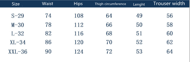 Size: S-29, M-30, L-32, XL-34, XXL-36