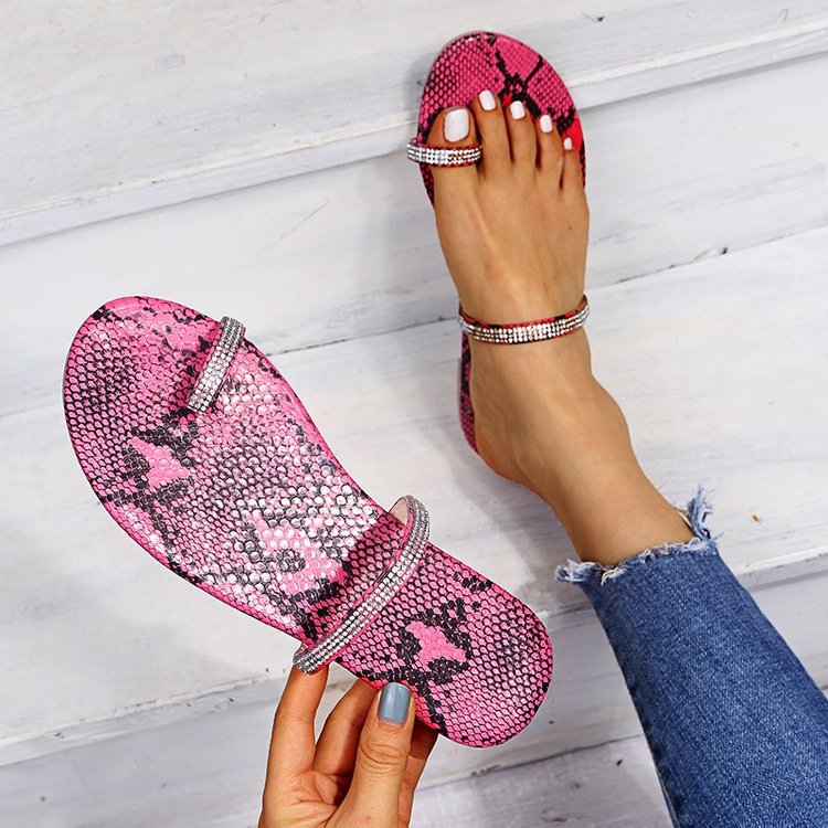 Summer Slippers Women Wish Stand-Alone New European And American Set Of Toe Rhinestone Large Size Flat Bottom Women's Slippers