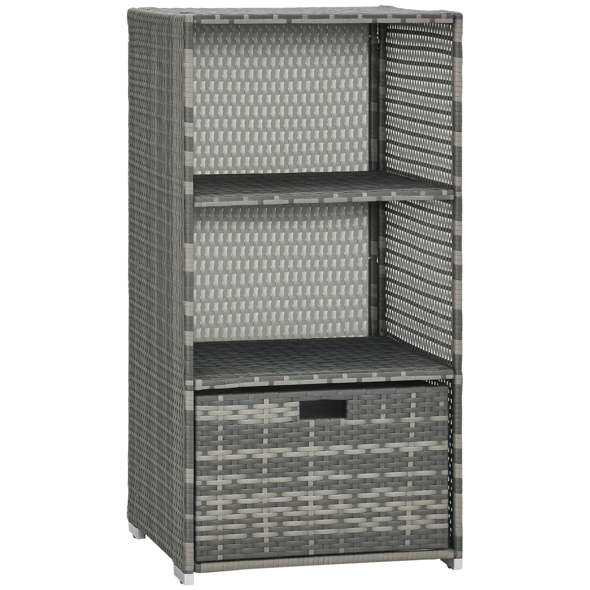 [BRAND NAME] has a pool caddy that's waterproof and full of tropical style. This convenient storage solution is handwoven with PE plastic rattan that has the personal charm of classic wicker. Use it to hold your towels. Inside or outside, it works wonderfully anywhere with water. It gives you a protective place to put them by the poolside, hot tub, bathtub, sauna, or spa. The bottom basket shelf is an excellent area for pool toys, bubble baths or sunscreens, shampoo, or snacks.