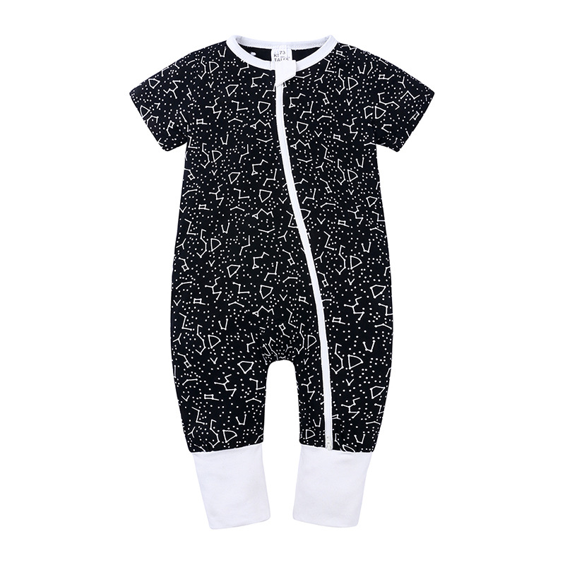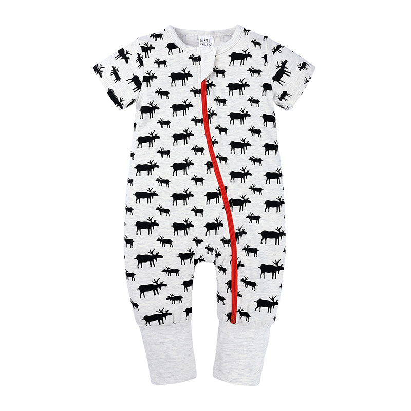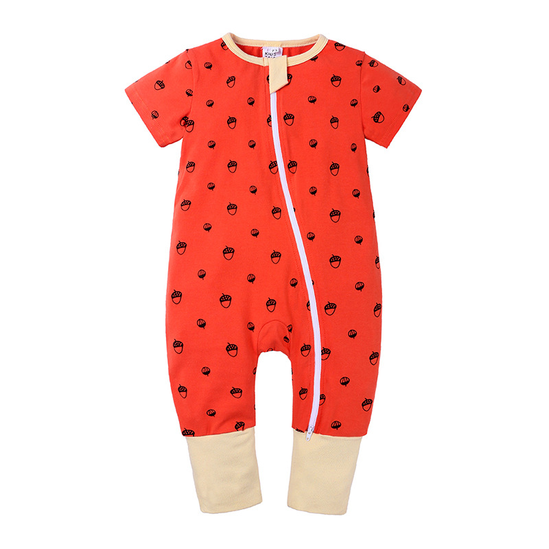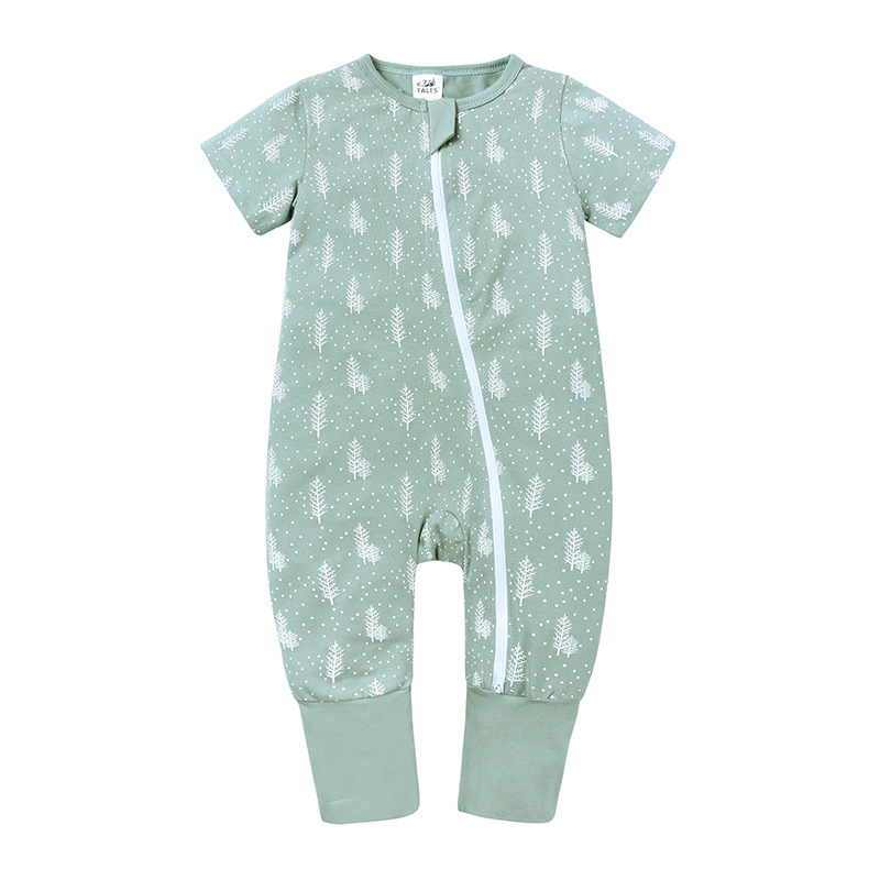 Color: A beige leaf pattern short sleeve long climbing, B yellow star pattern short sleeve long climbing, C pink leaf pattern short sleeve long climbing, D green panda pattern short sleeve long climbing, E apple pattern short sleeve long climbing, F elk pattern Short sleeve long crawl, G hedgehog short sleeve long crawl, bicycle short sleeve long crawl, H cartoon short sleeve long crawl, I cartoon lion short sleeve long crawl, J green collar striped short sleeve long crawl, K fuchsia striped short sleeve long Climbing, L red stripes short sleeve long climbing, M black stripes short sleeve long climbing, N polar bear pattern short sleeve long climbing, O penguin pattern short sleeve long climbing, P fox pattern short sleeve long climbing, Q hazelnut short sleeve long climbing Clothing, R green leaves short-sleeved long climbing, S black geometric short-sleeved long climbing