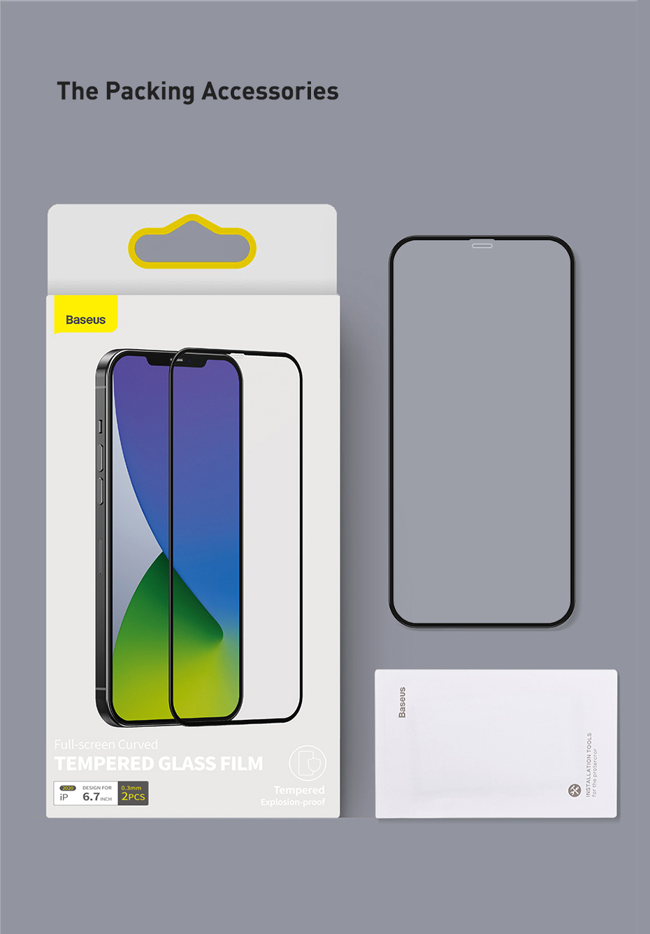 Two pieces of tempered film (including: cleaning bag*1)