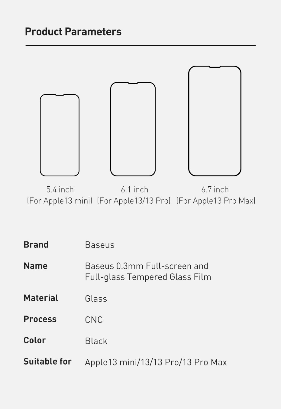 Size: iPhone 13 5.4 inches, iPhone 13 6.1/6.1 Pro, iPhone 13 Pro Max 6.7