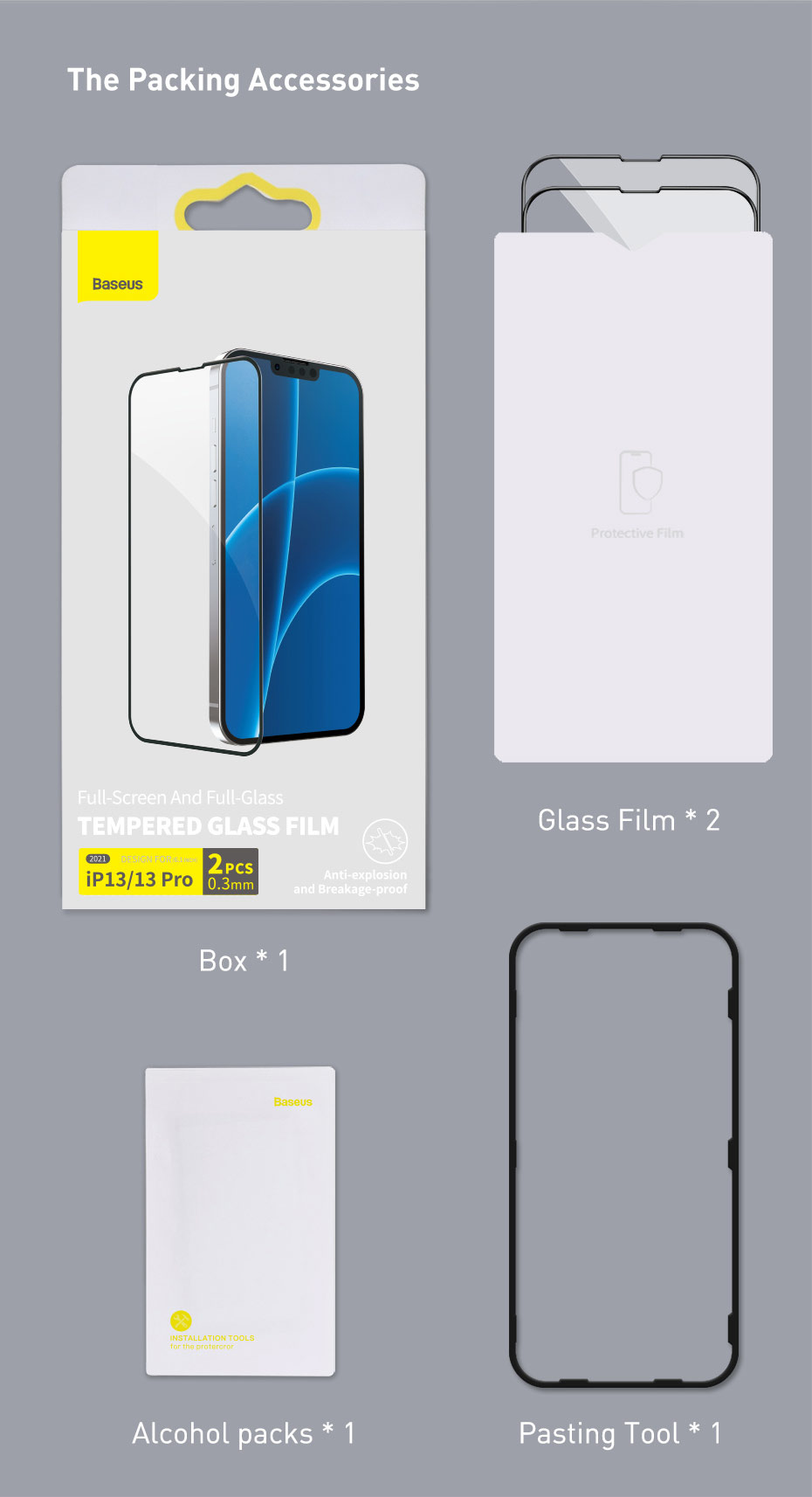 Two pieces of toughened film + film artifact*1+cleaning bag*1