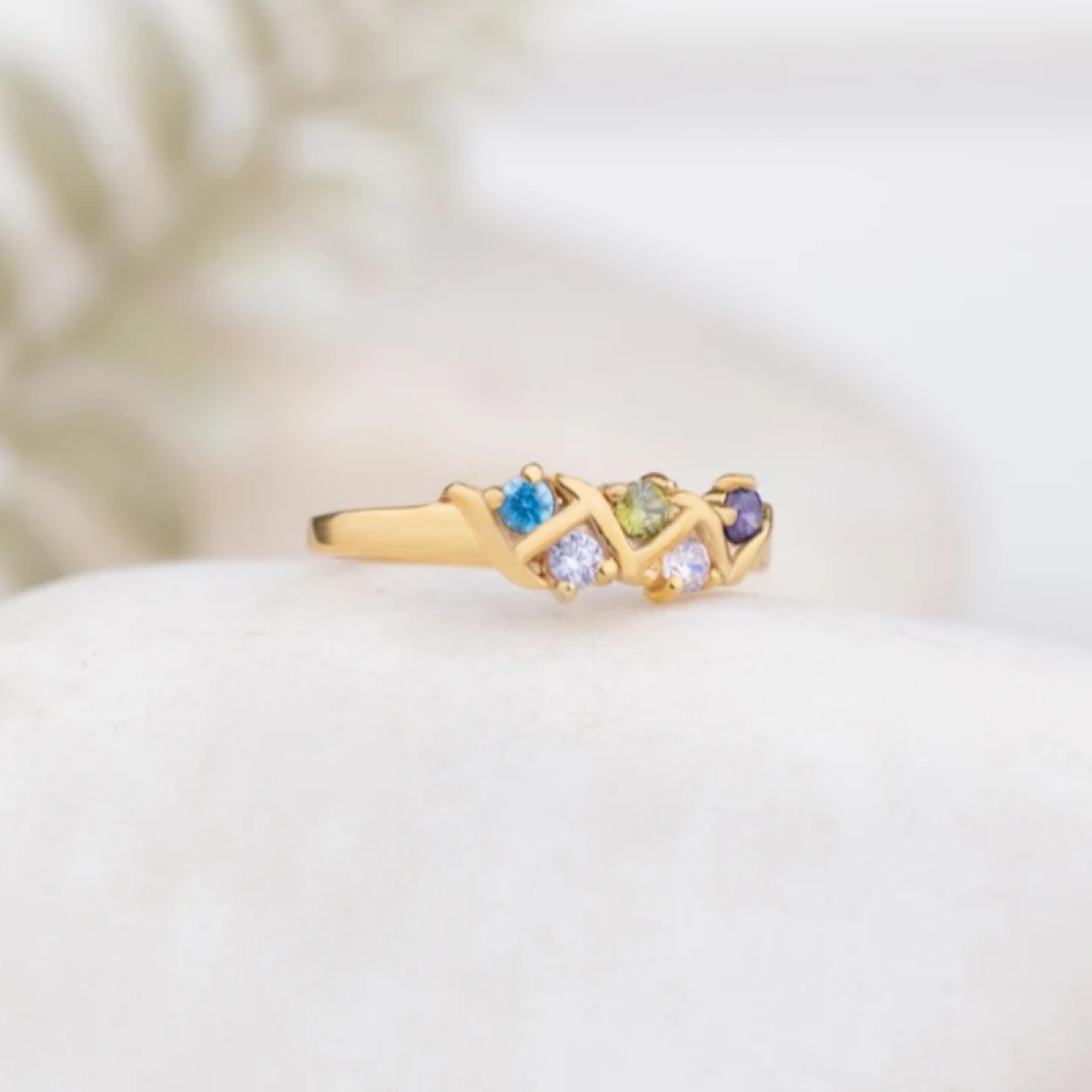 1-6 Birthstone Order Family Mother 925K Silver Dainty Ring
