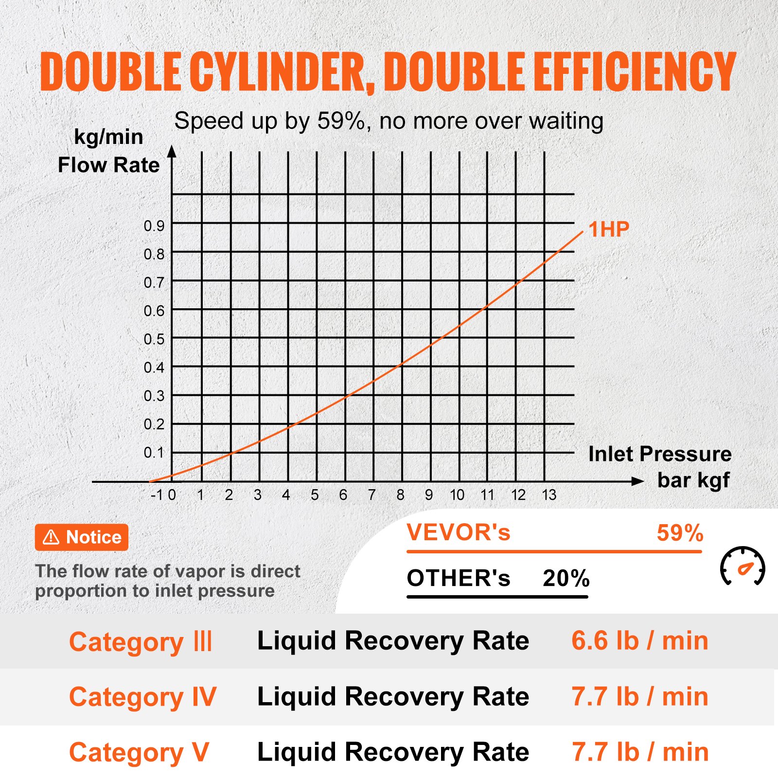 Dual-cylinder Configuration: The 1 HP dual-cylinder brush motor refrigerant recovery machine boasts a maximum liquid recovery rate of 7.7 lb/min, a 59% faster recovery speed than single-cylinder models. It quickly recovers both vapor and liquid refrigerants! It is also equipped with a fan and a condenser that quickly condense and dissipate heat, ensuring stable and strong performance for long-term use.