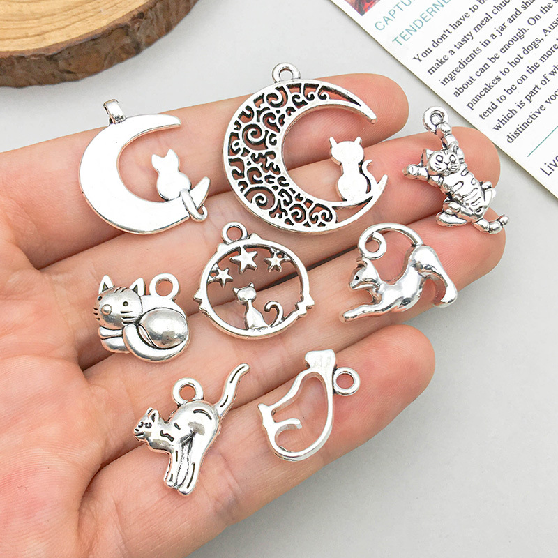 1 New Retro-style Ancient Silver Alloy Moon Cat Pendant Accessory