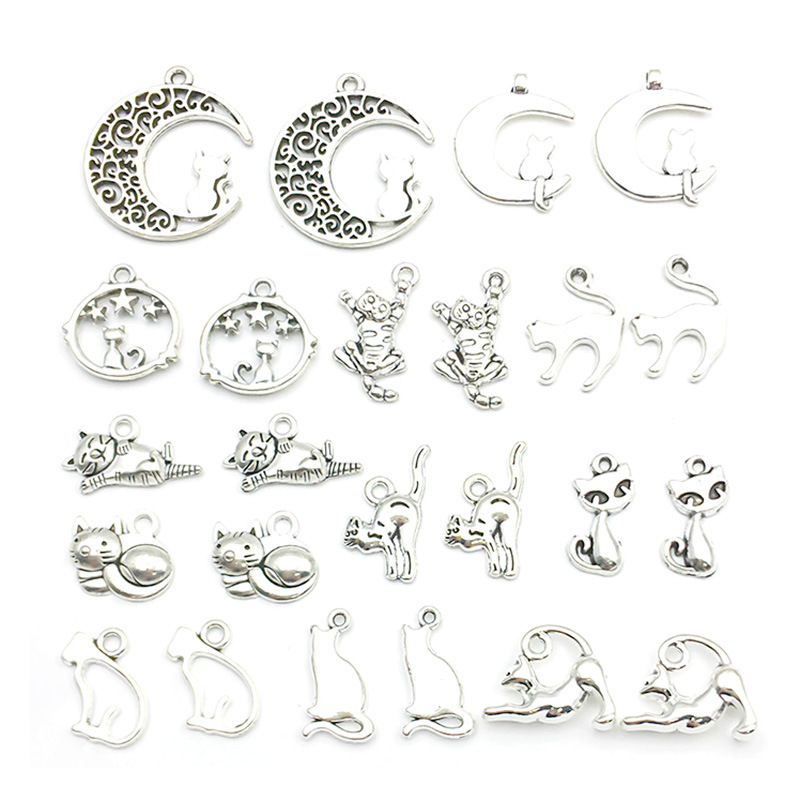 Color: Mixed 24 antique silver cats-SN440