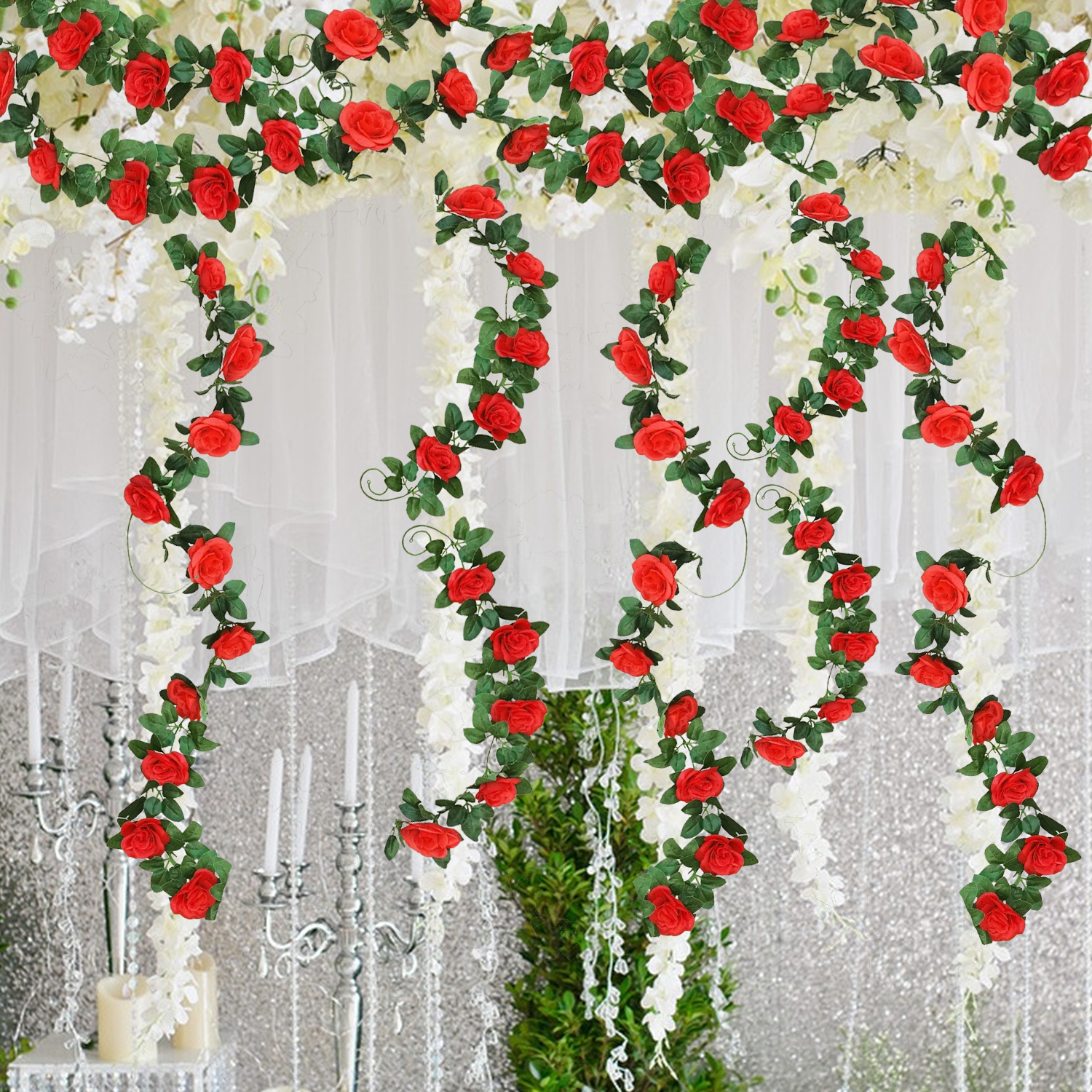 1 Pcs Red Artificial Eucalyptus Garlands
