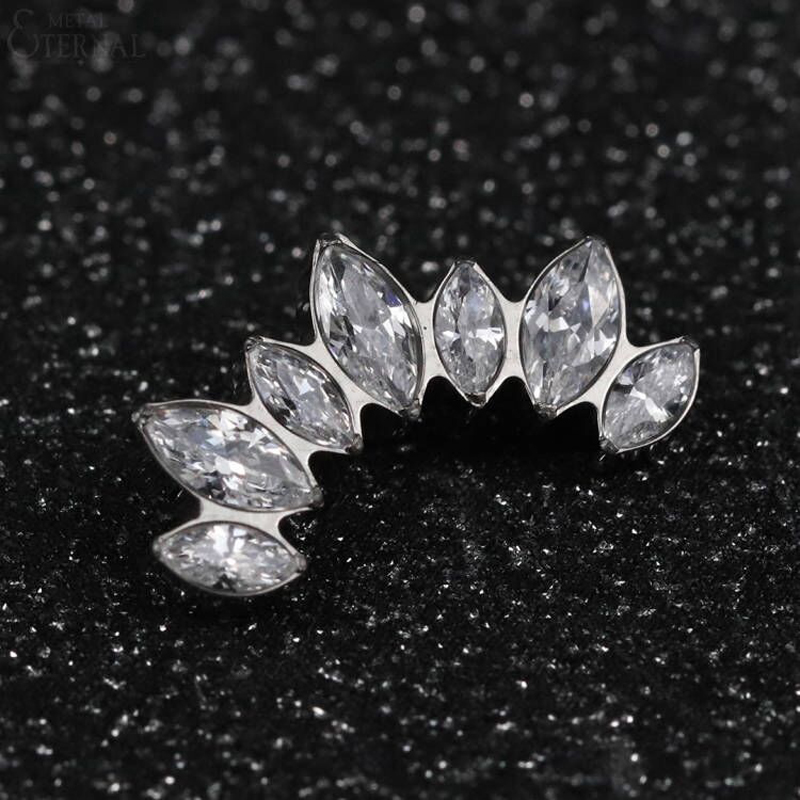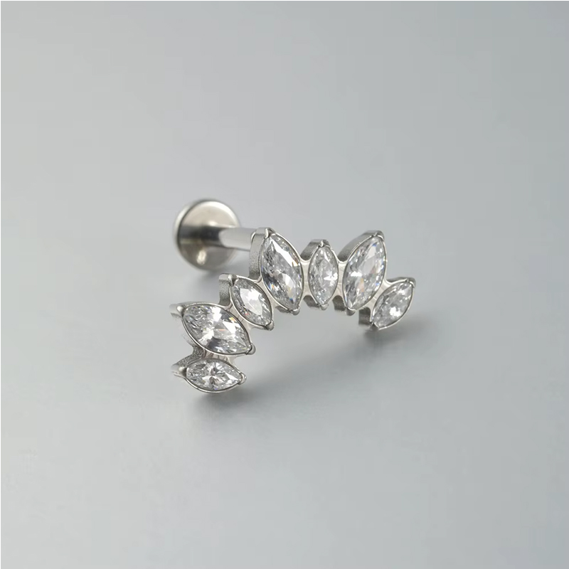 1 pair of women's earrings, 16 Gauge Implant Grade Titanium Internally Threaded Labret With Marquise and Round CZ Fan Top,Geometric Glow earrings, crystal clusters blooming