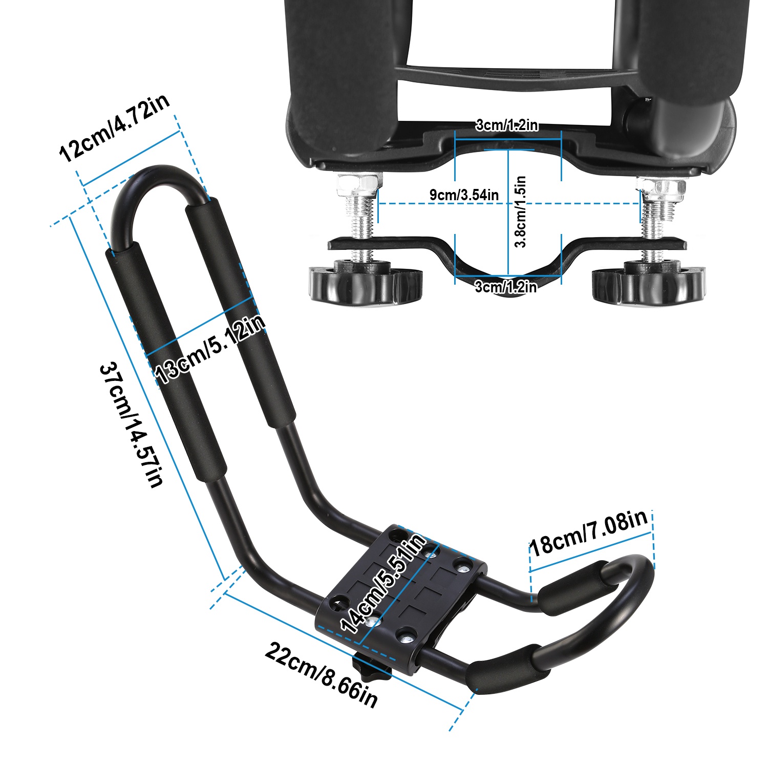• **KAYAK-BODY-FRIENDLY DESIGN*:Attached 4pcs .2inches-thickness foam pads on each carrier rack to protect your kayak or canoe from any scratch.