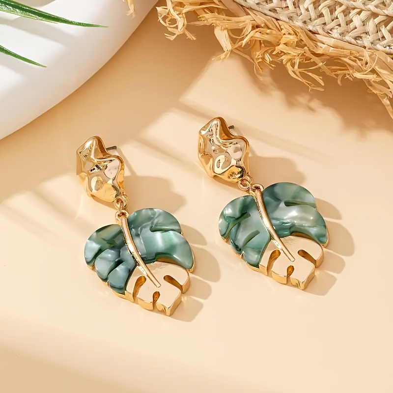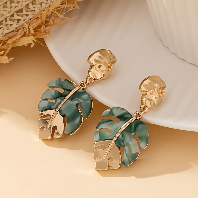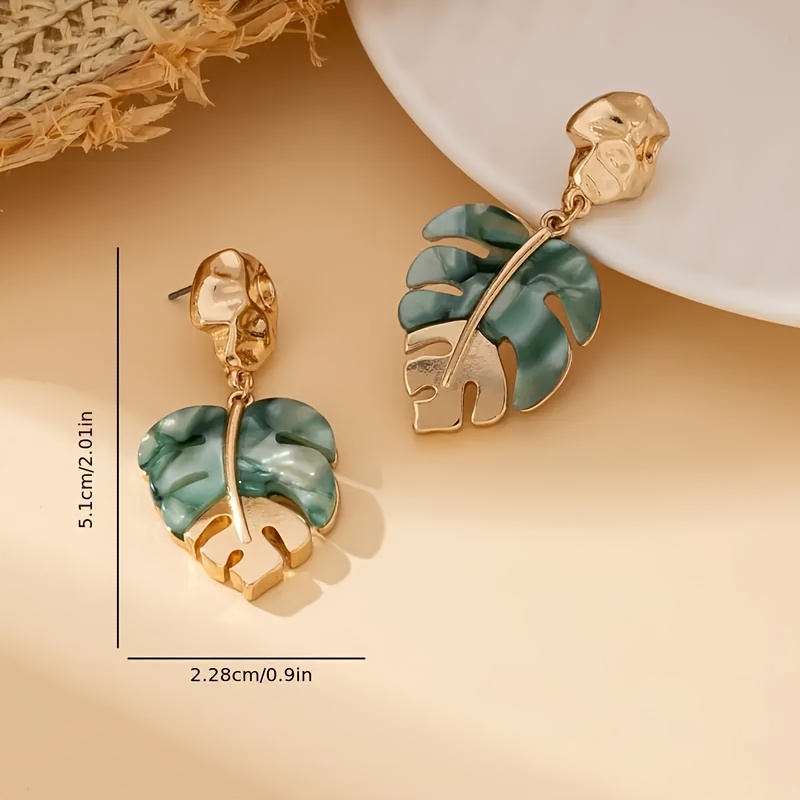 1 Pair Vintage Boho Style Leaf Dangle Earrings, Elegant & Chic, For Women's Daily Wear, Banquets & Vacations, Exquisite Female Jewelry Gift