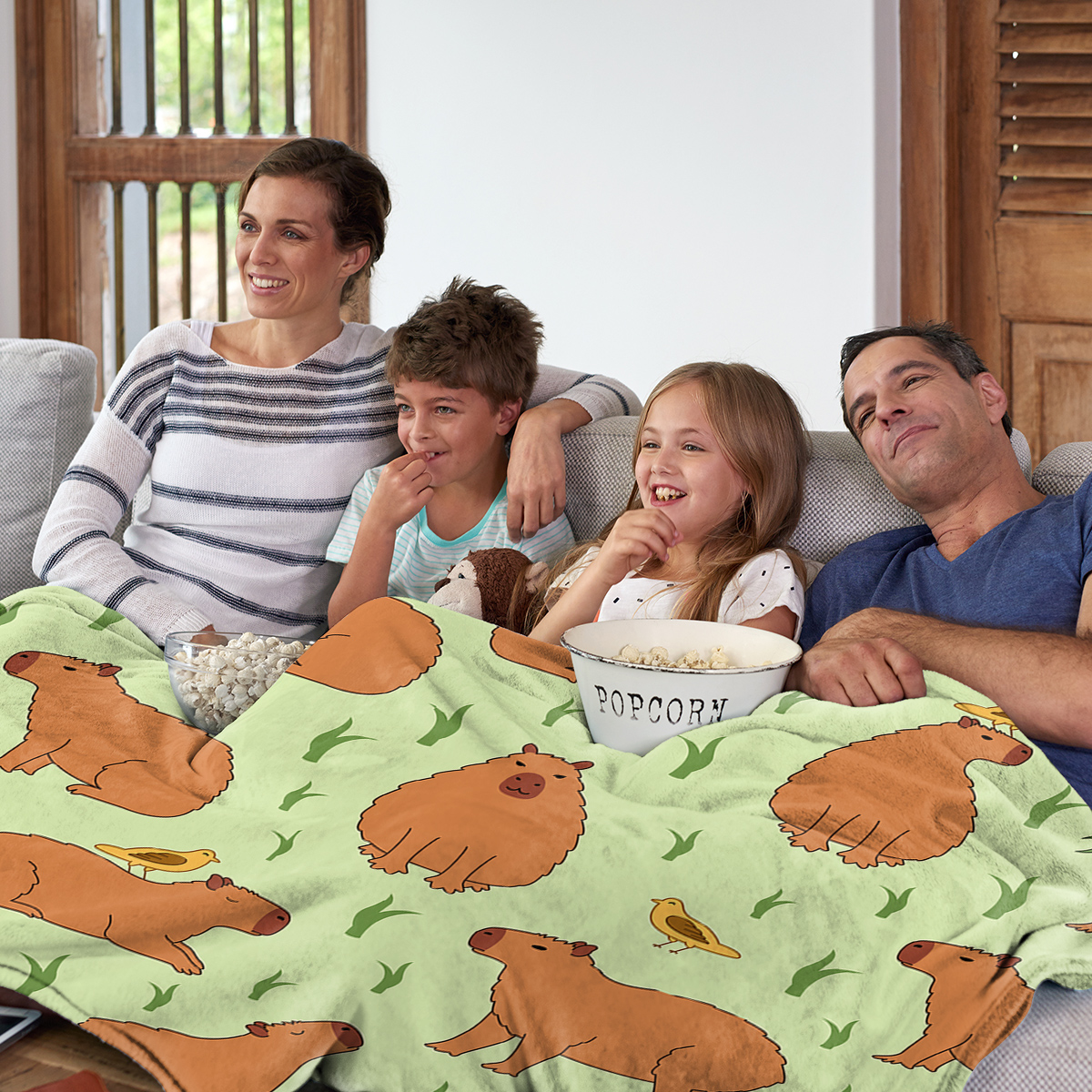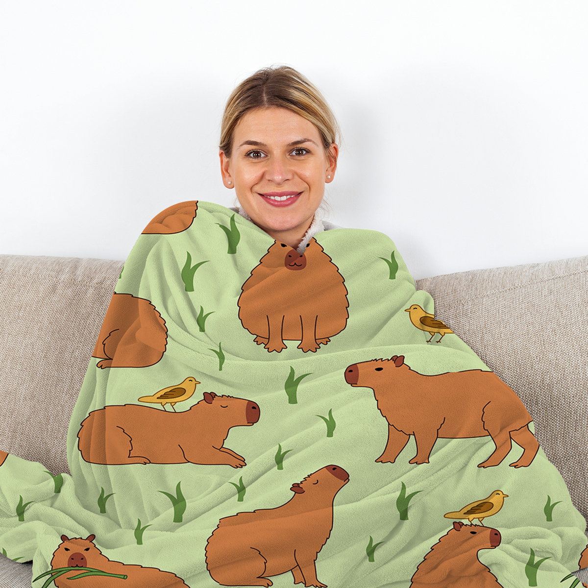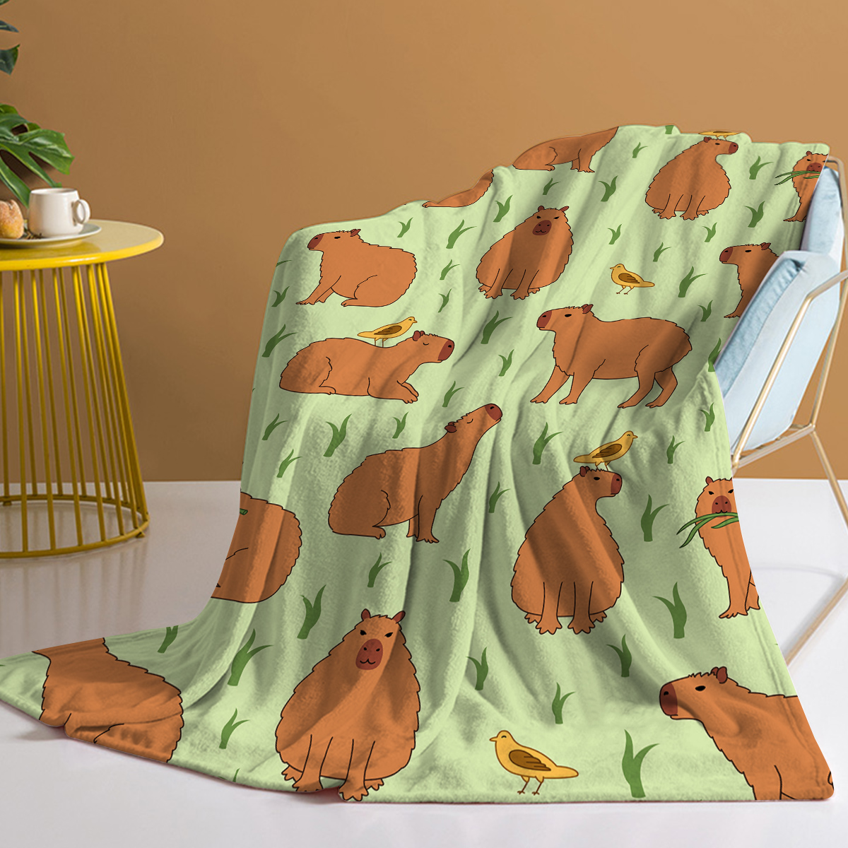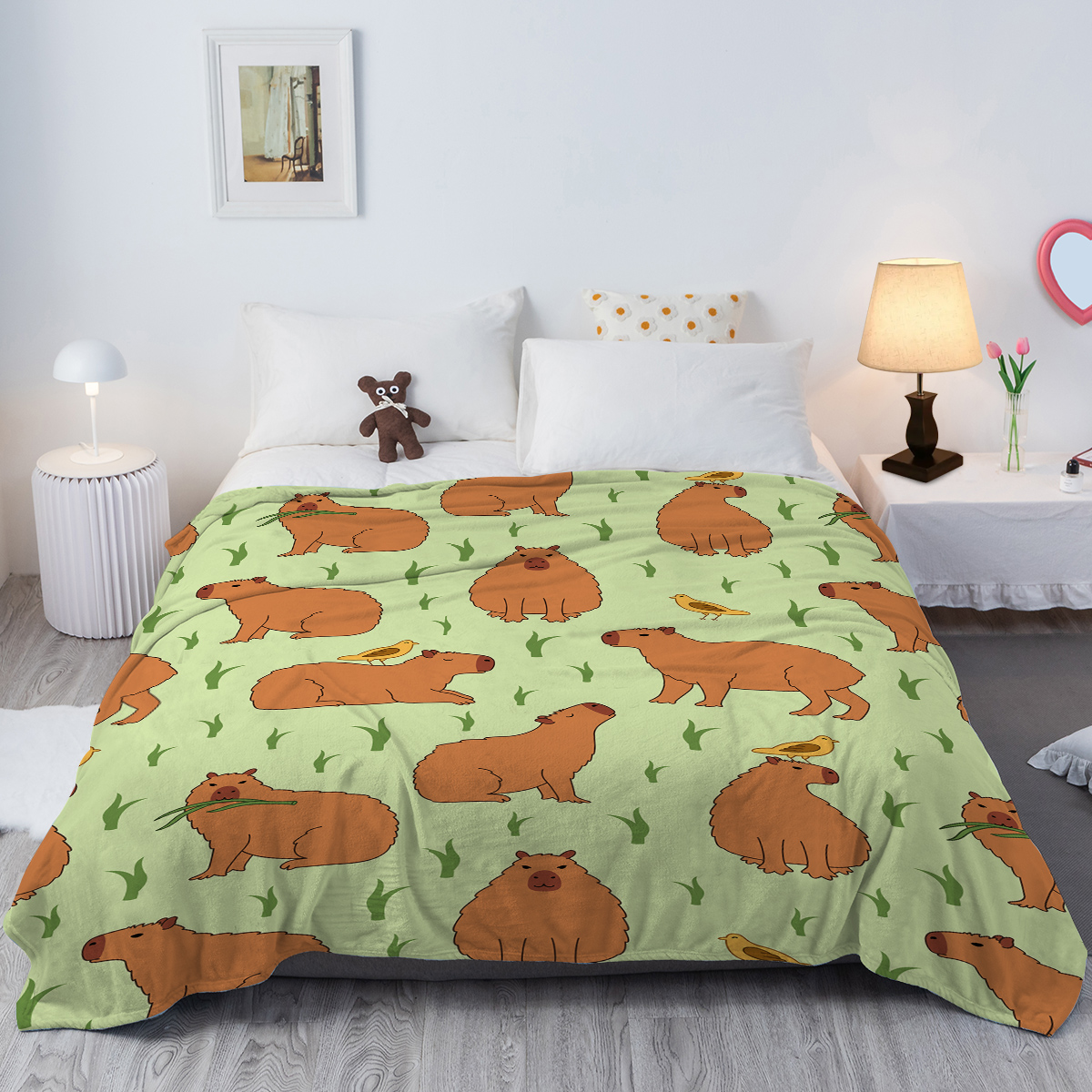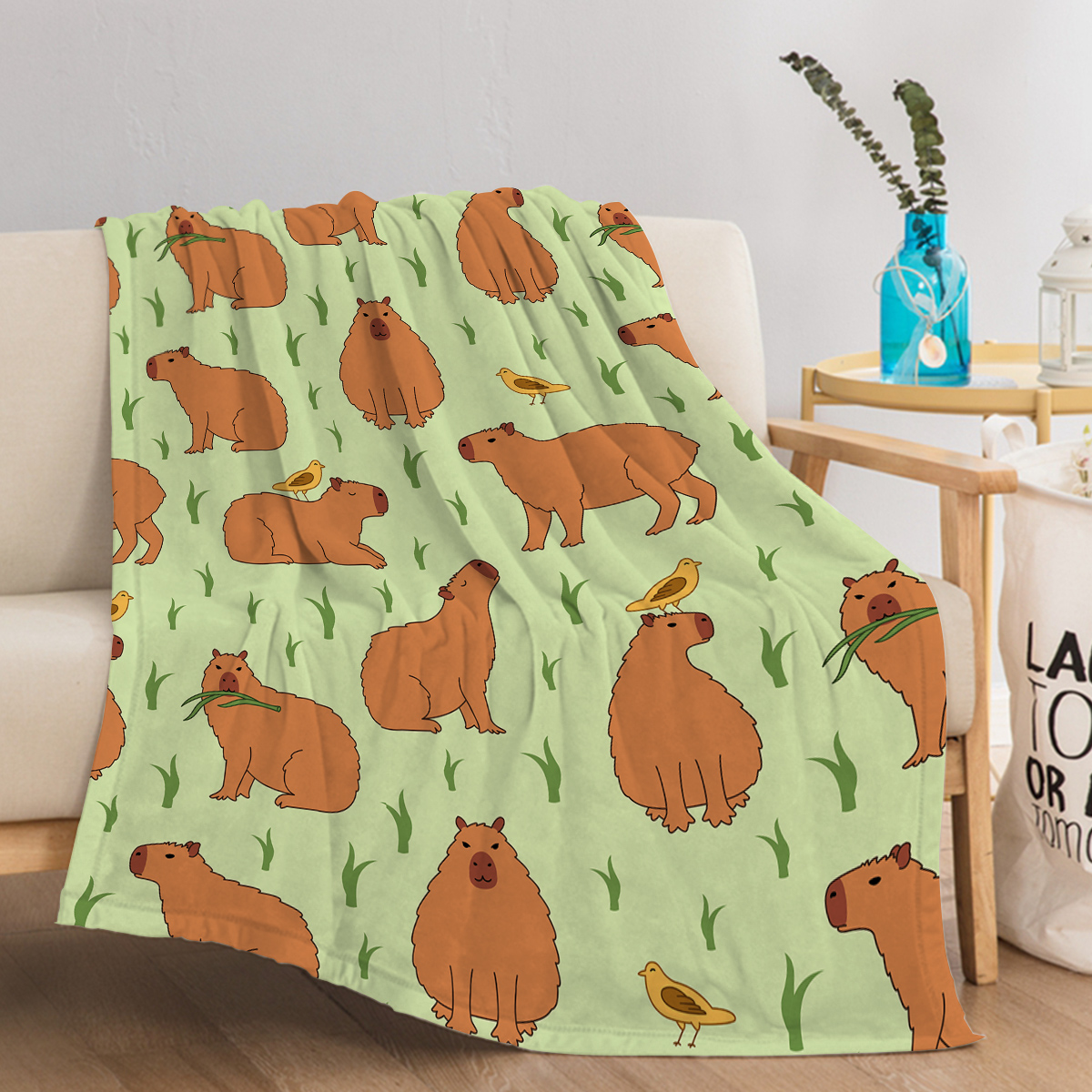 1 Pce Of Flannel Bird And Capybara Combined Pattern Soft And Fluffy Multifunctional Outdoor Beach Camping Living Room Sofa Office Nap Printed Blanket