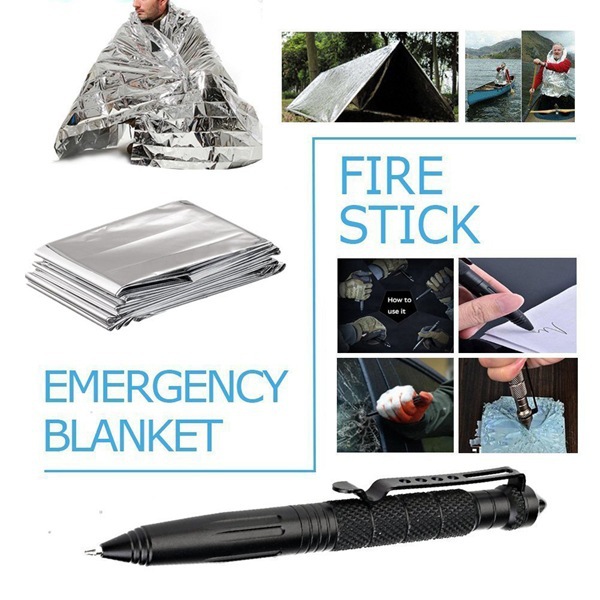 pen, 1 x tactical flashlight, 1 multi-function copper compass,