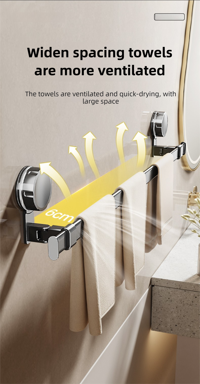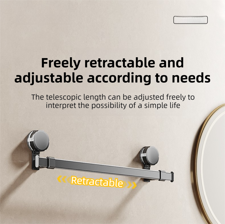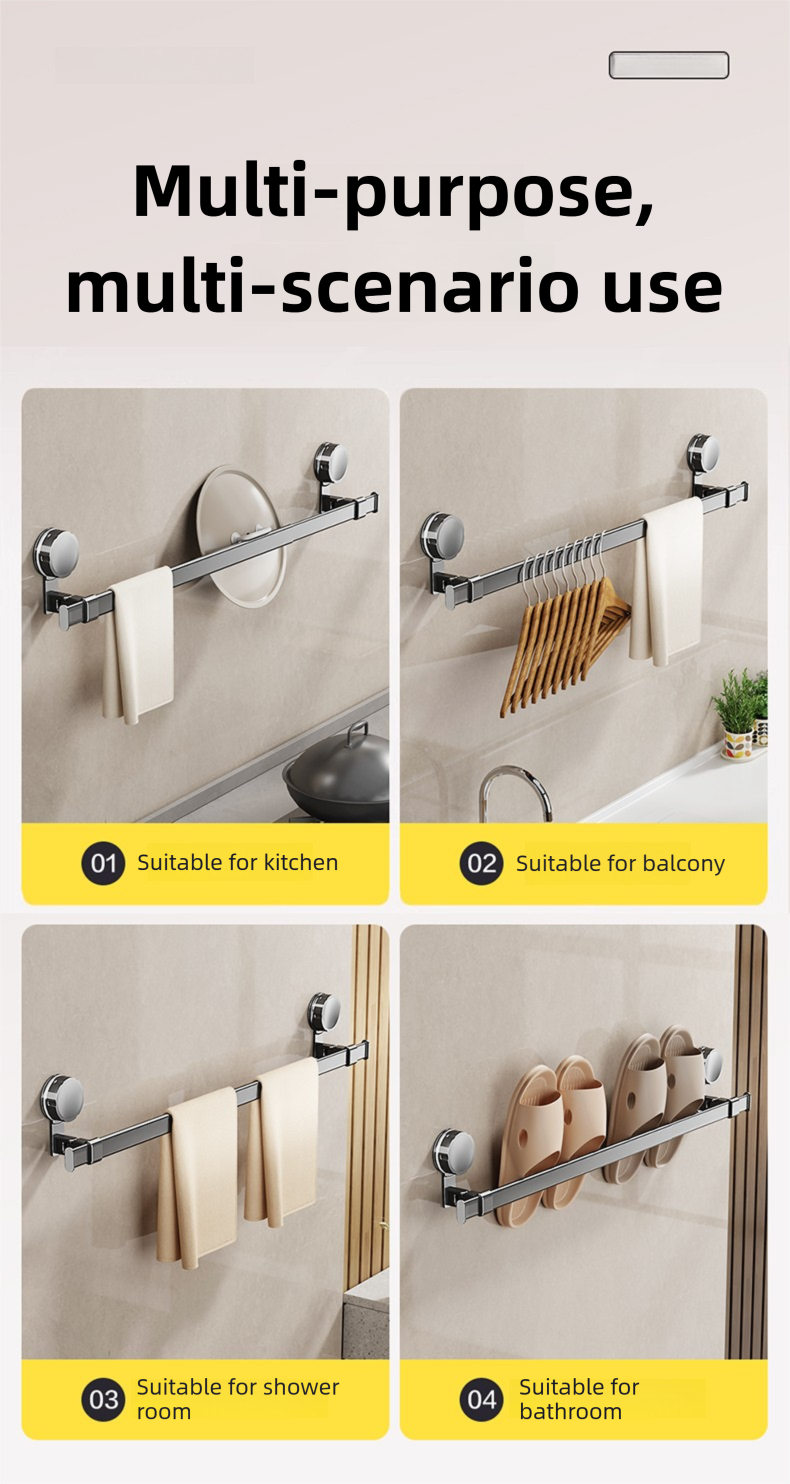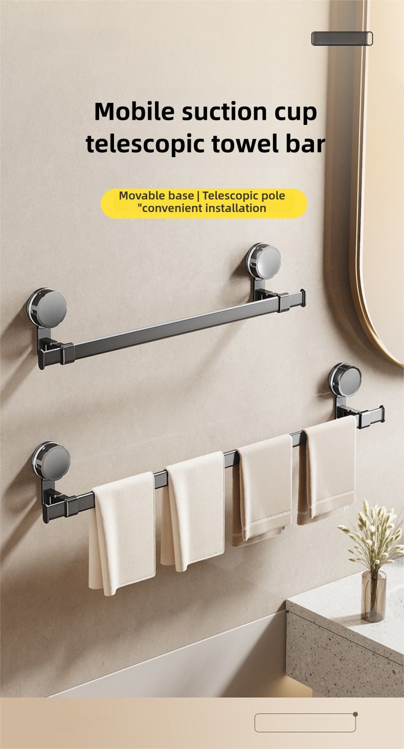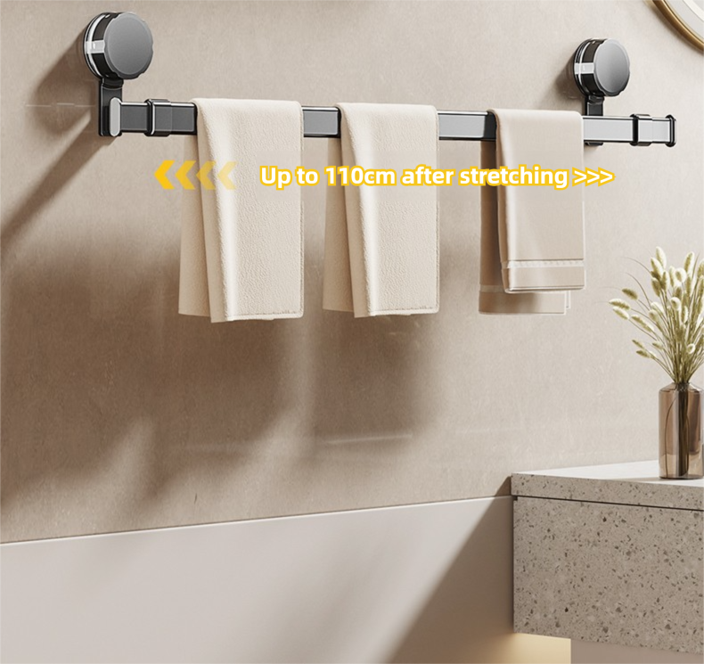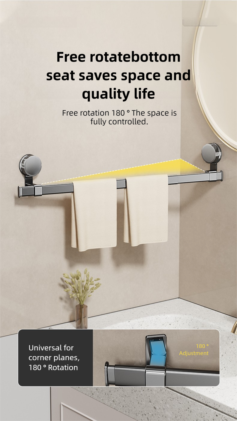 Adjustable suction cup towel rack 25.2 to 43.3 inches bathroom towel rack, 180 ° rotation, space saving, no drilling wall installation towel rack shower, bathroom accessories