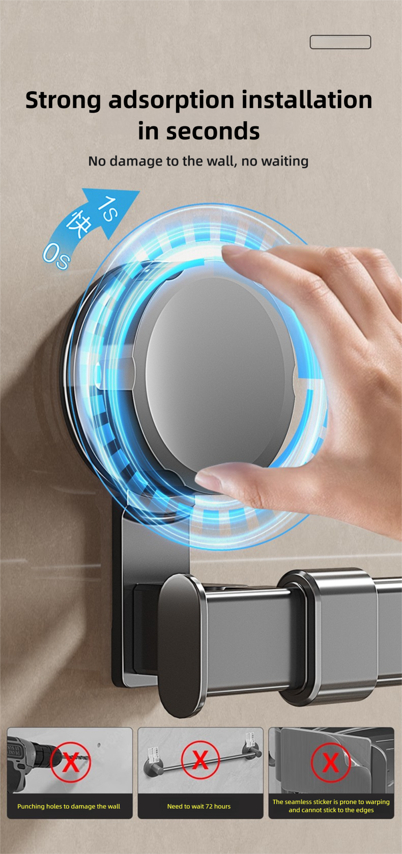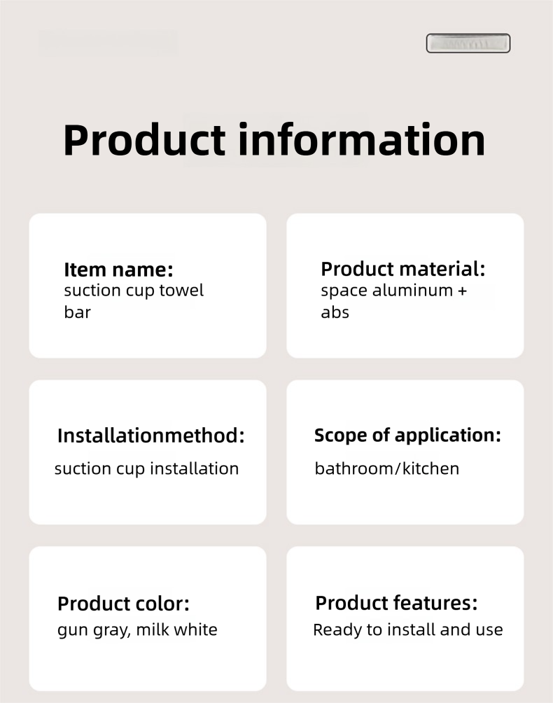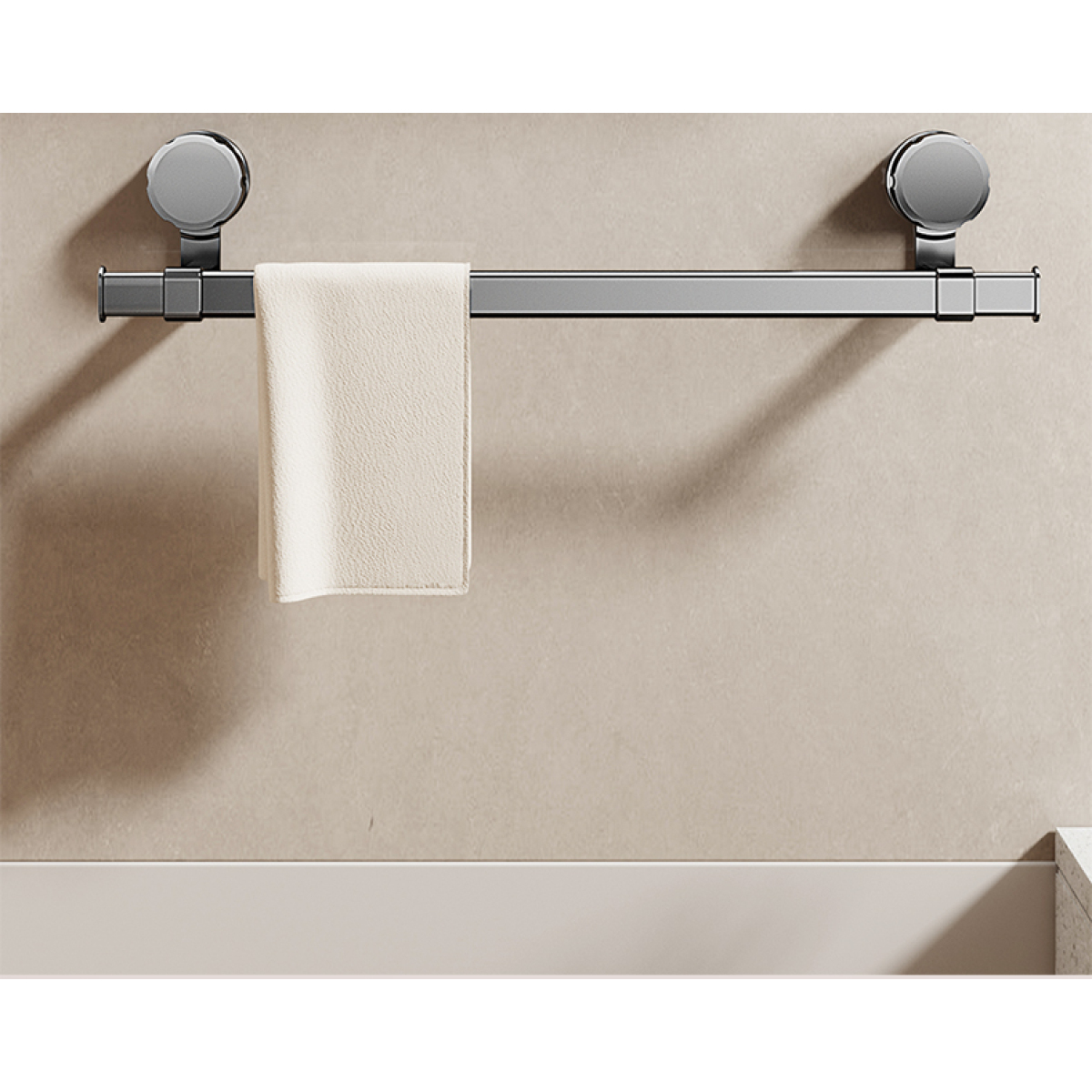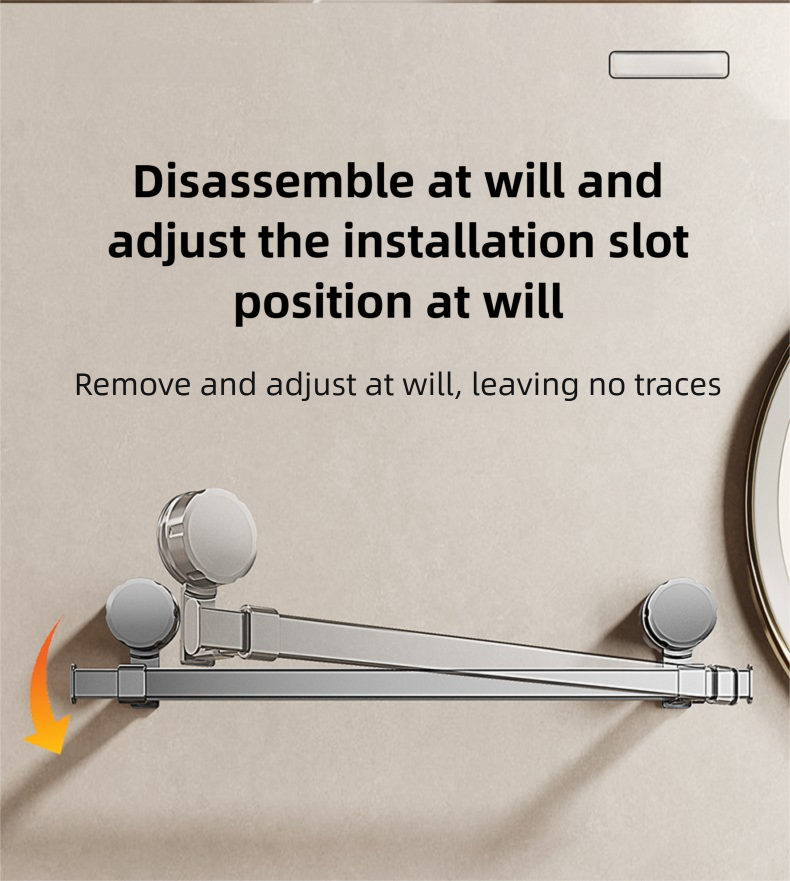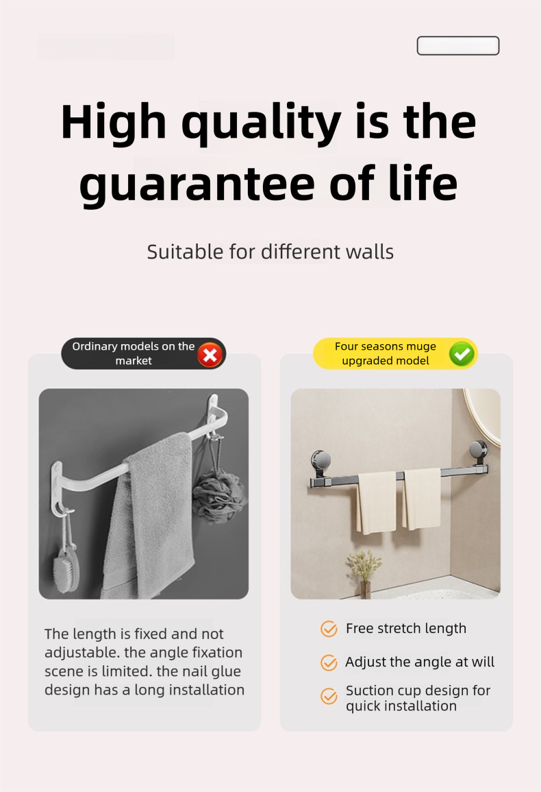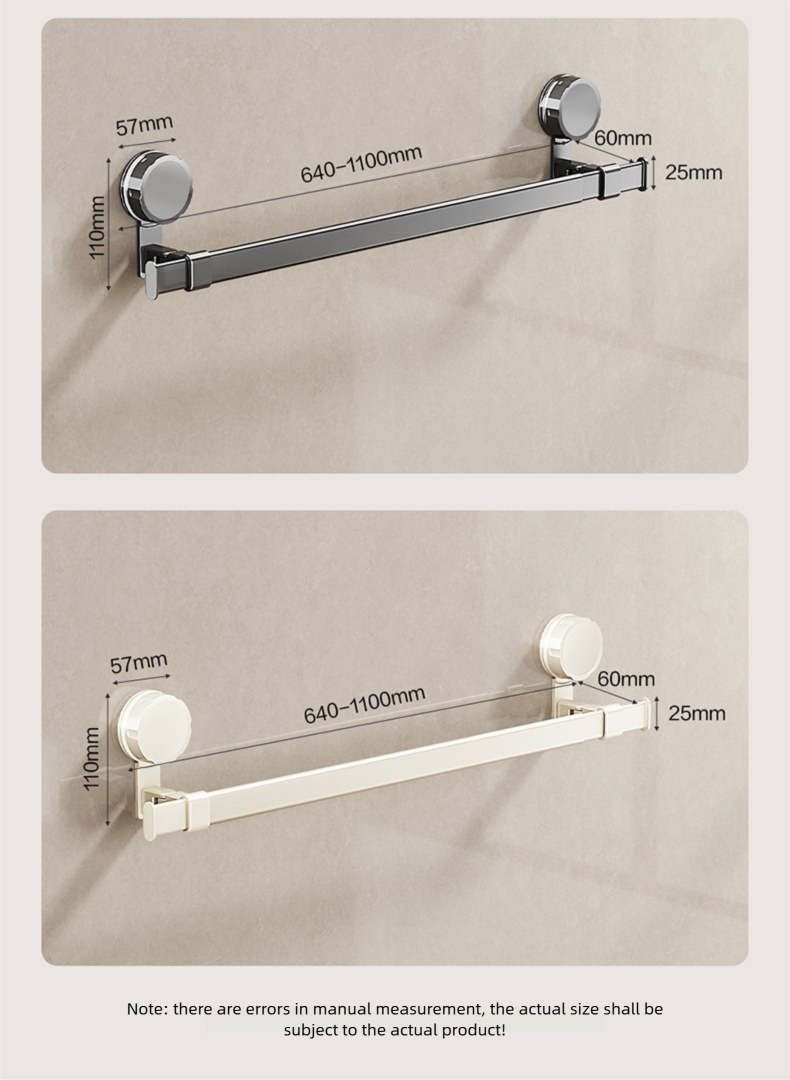 Adjustable suction cup towel rack 25.2 to 43.3 inches bathroom towel rack, 180 ° rotation, space saving, no drilling wall installation towel rack shower, bathroom accessories