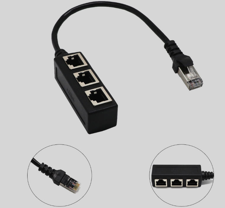 You can connect two network cables to a longer cable through this splitter.