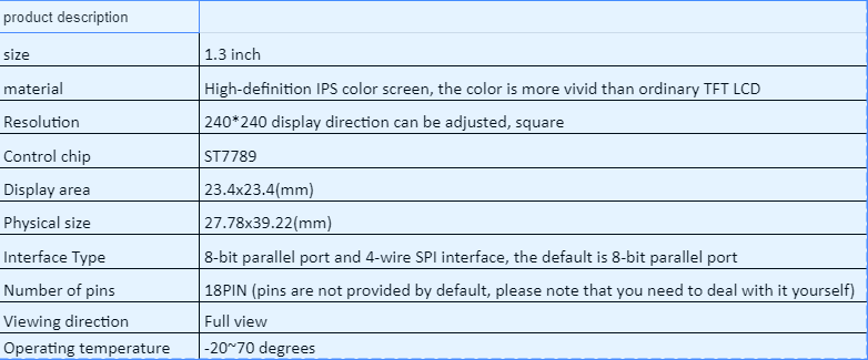 | Resolution | 240*240 display direction can be adjusted, square |