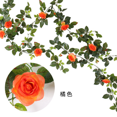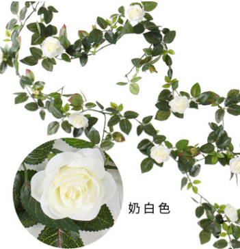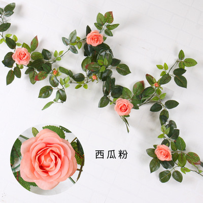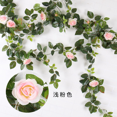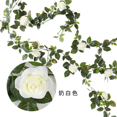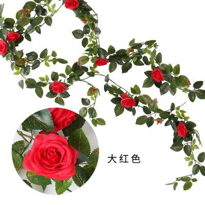 1.4M Artificial Eucalyptus with Rose Garland Hanging Rattan Vertical Garden Home