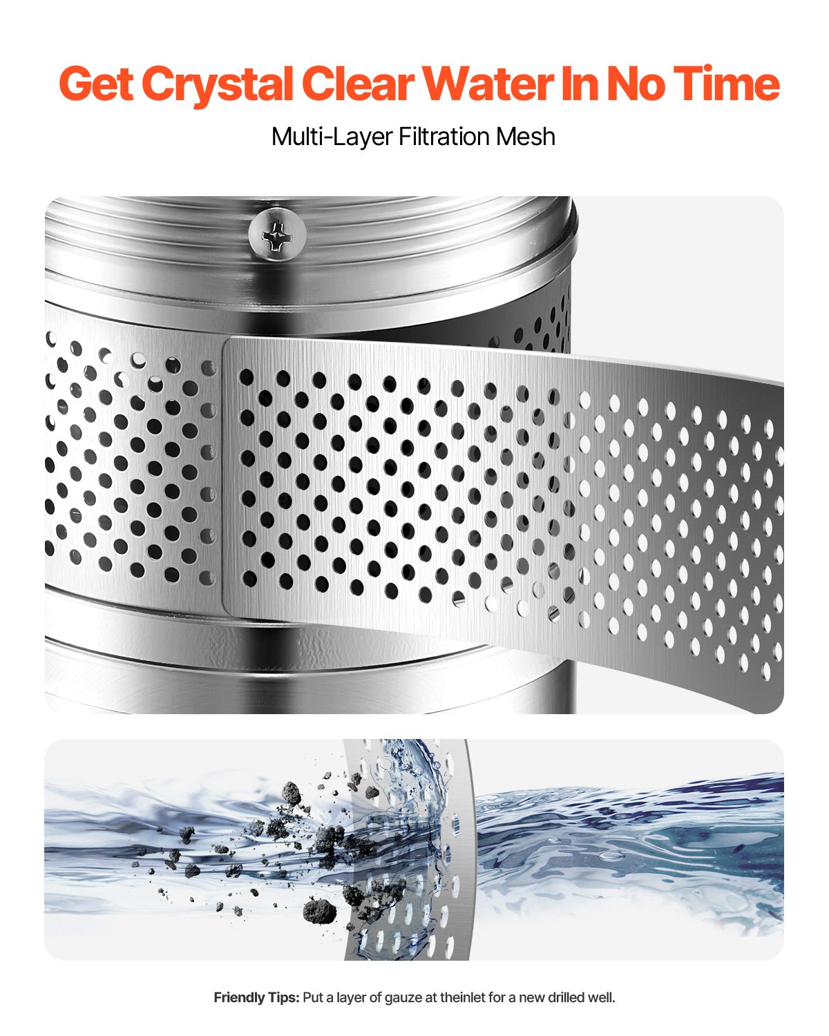 Powerful Pure Copper Motor: Equipped with a copper wire motor, this deep well submersible water pump delivers strong and stable water flow. The motor is designed with overheat protection to avoid overheating, ensuring optimal performance for reliable, long-lasting operation.