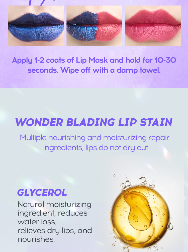 Product advantages: Waterproof, color-changing, long-lasting, fade-resistant, easy to apply, brightens the complexion, creates a natural, three-dimensional makeup look, and won’t transfer onto cups.
