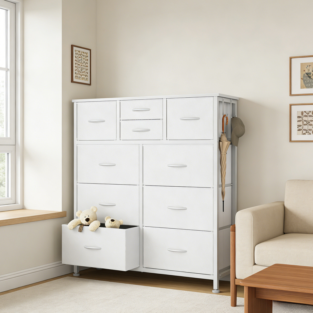【 Universal Ten-Drawer Storage Cabinet 】 The wardrobe has drawers of three sizes: small, medium and large, which can store clothes, accessories and household items, effectively organizing the room.