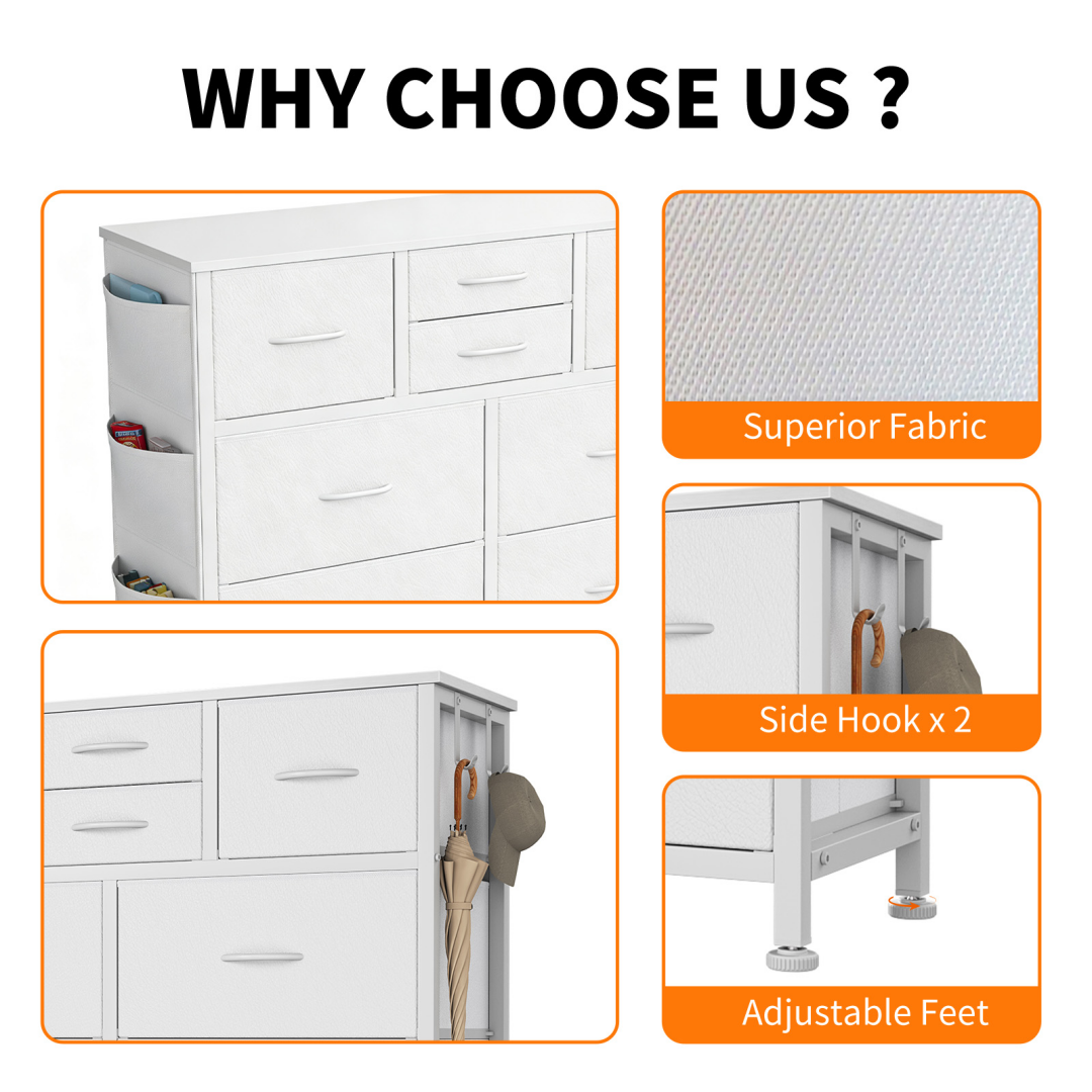 【 Reinforced and sturdy Structure 】 Sturdy metal frame, 12mm thick wooden top, layered non-woven fabric /PVC drawers, sturdy and anti-deformation, reliable support for heavy objects.