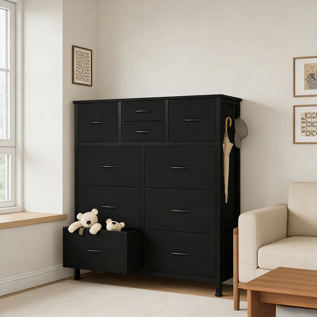 【 Universal Ten-Drawer Storage Cabinet 】 The wardrobe has drawers of three sizes: small, medium and large, which can store clothes, accessories and household items, effectively organizing the room.