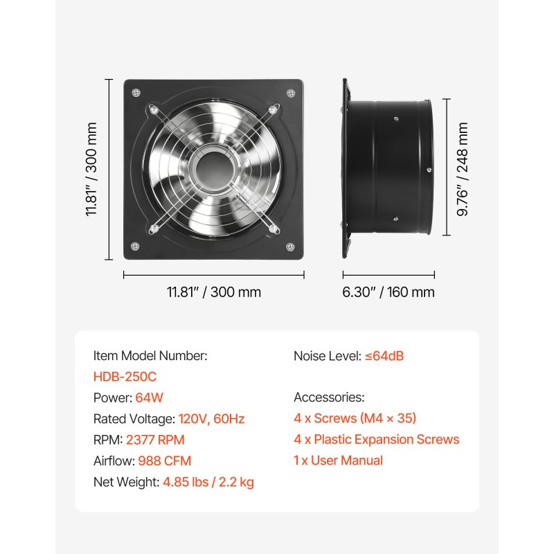 High Airflow Performance: This 10-inch exhaust fan delivers strong airflow for fast smoke and air circulation, keeping your kitchen or workshop fresh and comfortable during daily use