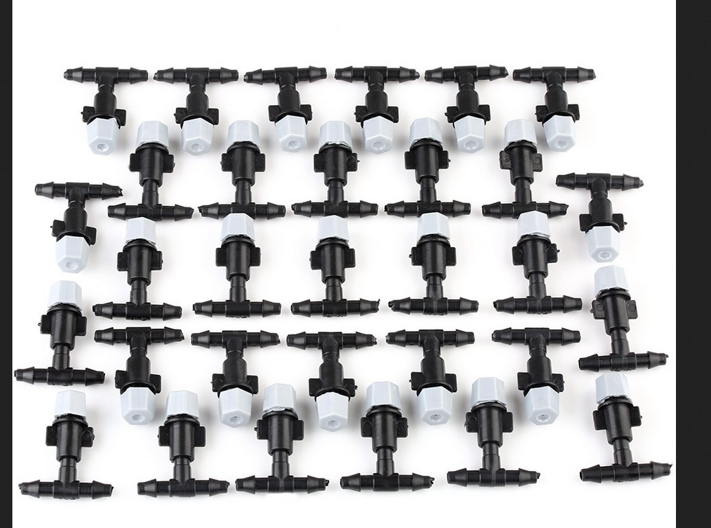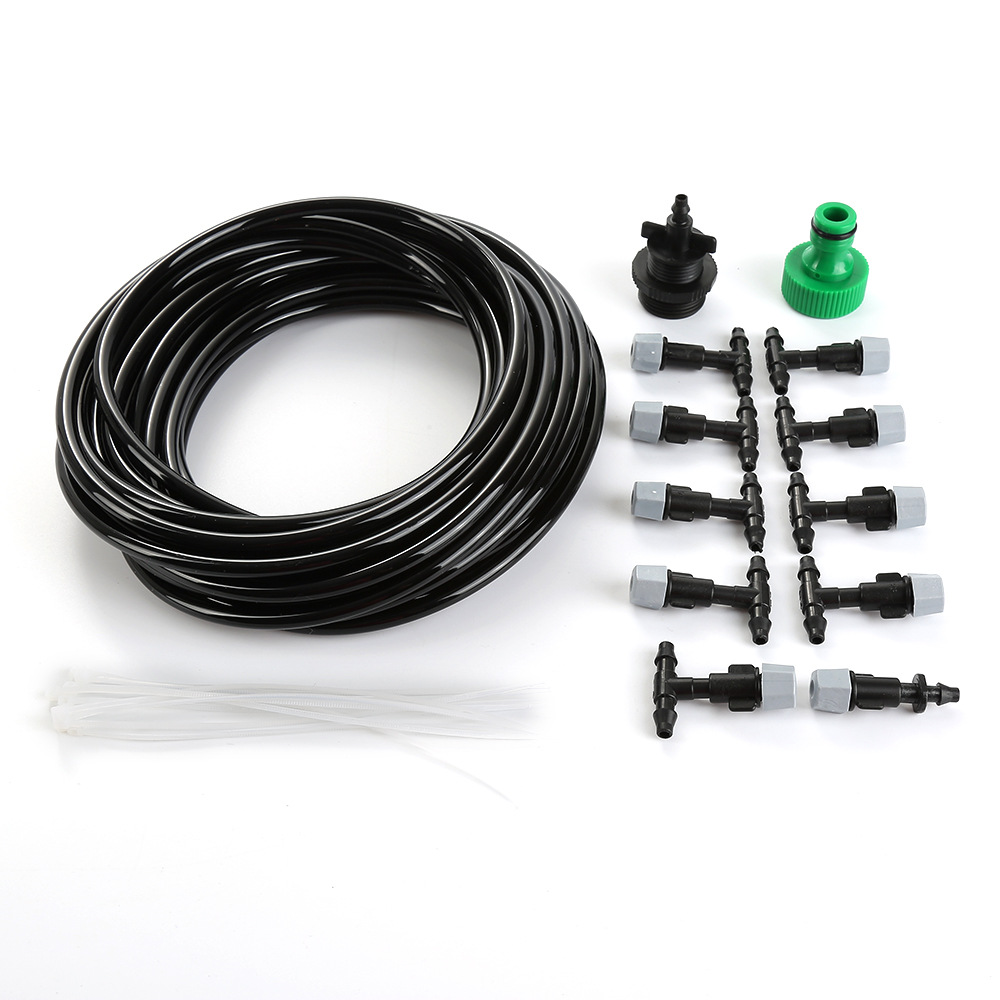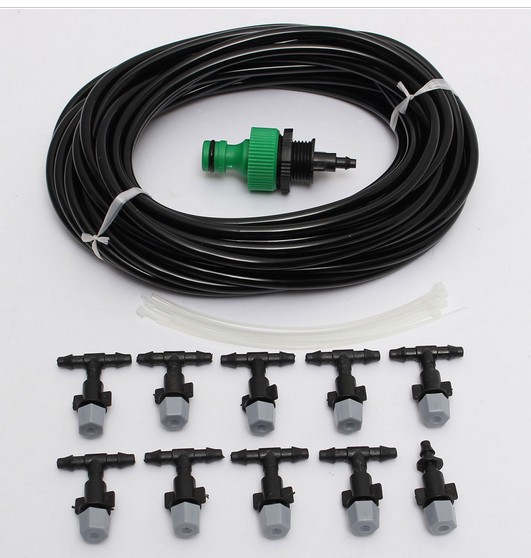 Product details: 1 nipple quick connector, 4/7 capillary tube 10 meters (tube size is about 4mm inner diameter and 4mm outer diameter), 9 tee nozzles, one straight nozzle, 10 gift ties.