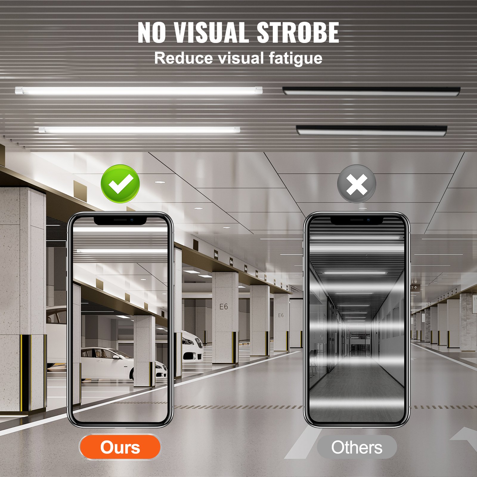 Anti-interference, No Strobe: Our LED store lights feature anti-high frequency and anti-RF interference design, not be interfered with by garage door remote control, radio, and other electronic products during working. It has no video flash, no eye injury, and you can use it with peace of mind.