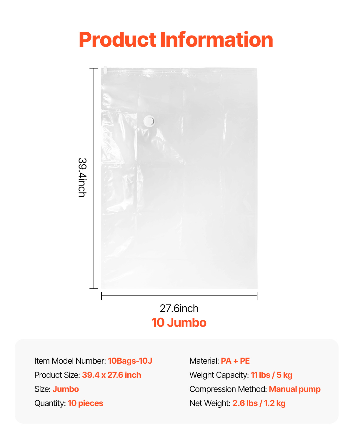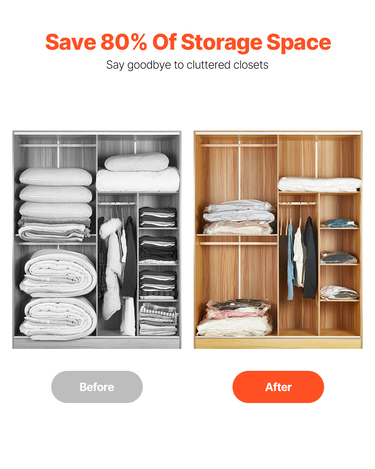 10 Pack Vacuum Storage Bags With Electric Pump, Space Saver Bags Compression For Comforters And Blankets, Sealer Clothes Storage Travel Essentials