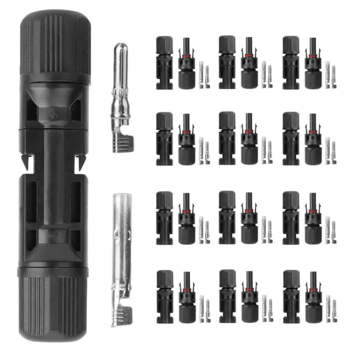 **Excellent Conductivity*:Comes with 1000V maximum pressure,30A maximum current,copper tin-plated conductive core attributes to an excellent conductivity. **Solar Panel Connectors*:Our connectors are designed for connect solar panels arrays and also specially designed to connect photovoltaic solar systems with high mechanical requirements and extreme weather conditions. **Premium Material*:The shell is made of hard plastic material which is high heat resistant,wear resistant and high insulation. And with its IP67 waterproof performance,it can be used in rainy or snowy day. **Solar Male/Female Connector*:Comes with 10 pairs solar panel connector(10pcs male & 10pcs female),which is compatible with different insulation diameters. **Easy Installation*:These solar panel connectors can be quick and simple assembled or removal. You can follow our user manual or surf on the internet to find some installation video.
