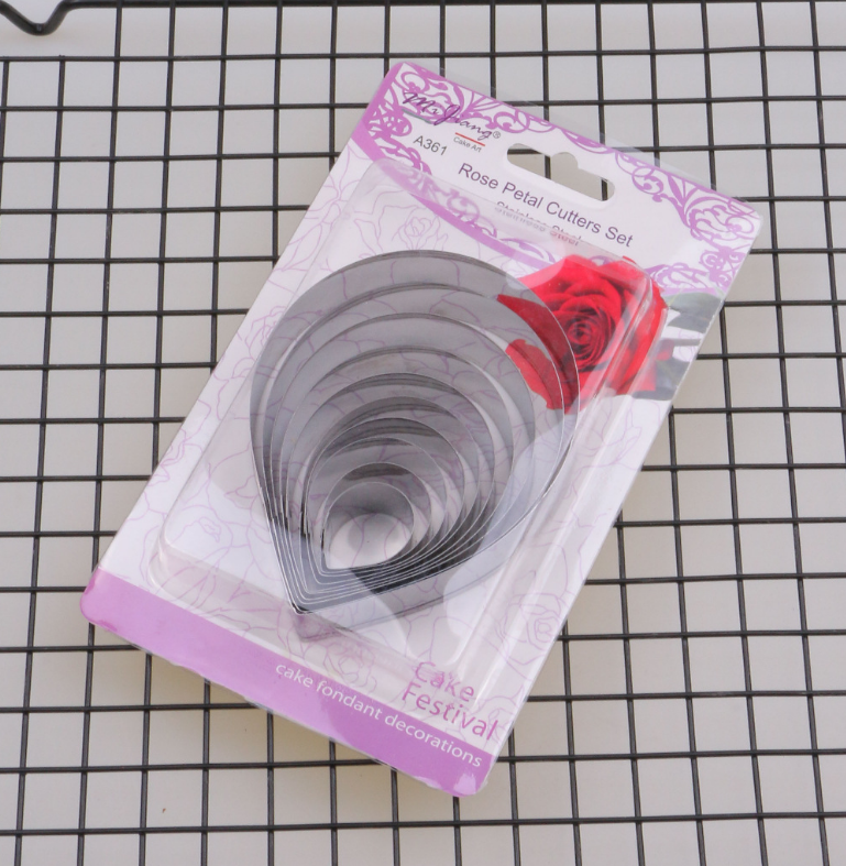 How to use: Put the fondant on the fondant pad and use a rolling pin to flatten it. Then use the 10 pieces of this petal mold to cut 2-3 petals of the same size and insert them in the middle of the petals. The wire is placed on a sponge mat, and the edge of the petal is pulled out of the edge of the petal using a stainless steel engraving group, and then the prepared pigment is applied, and then the petals are placed on the airing mat for a while. Finally, after the petals are shaped, the petals are placed together from small to large, which is a beautiful and realistic rose.
