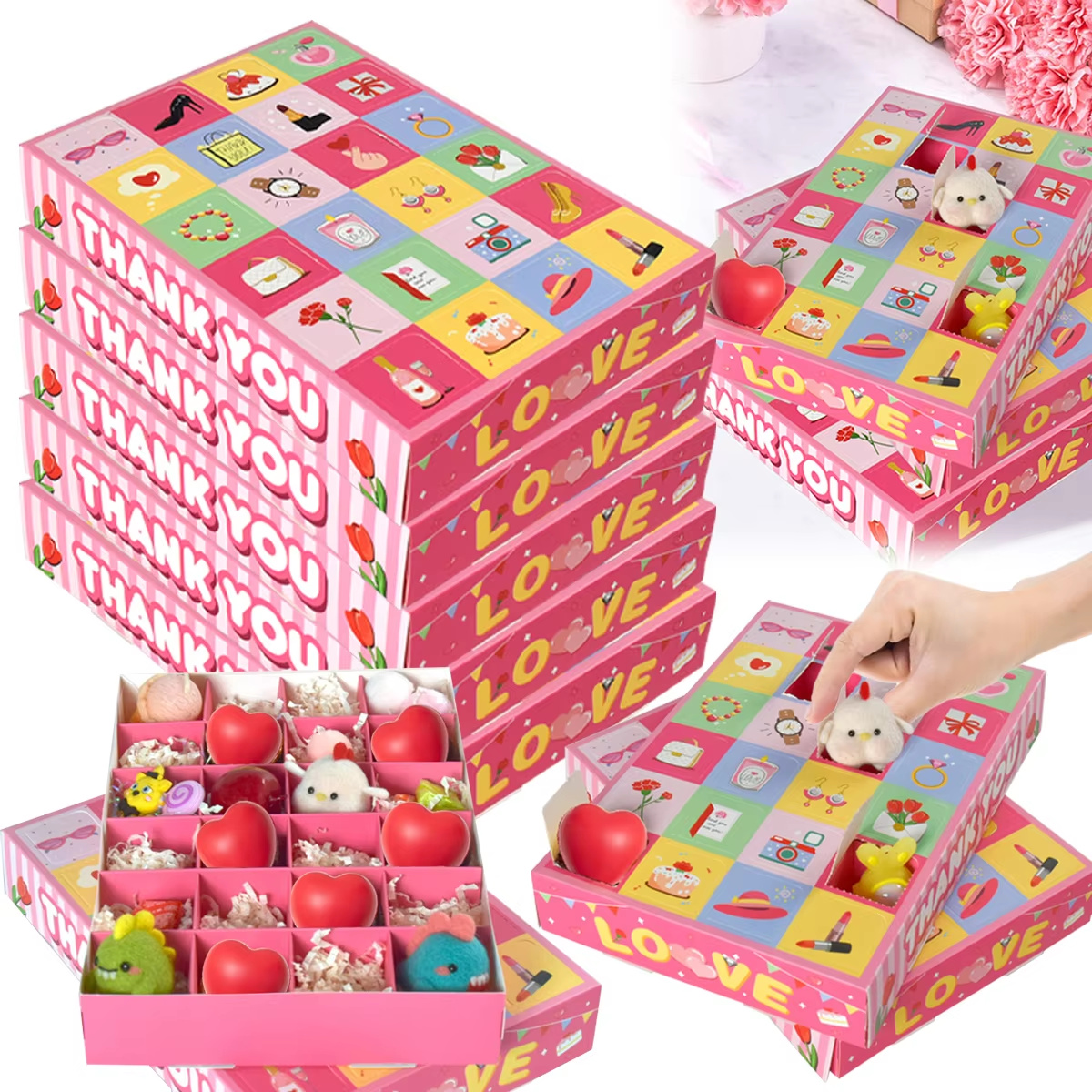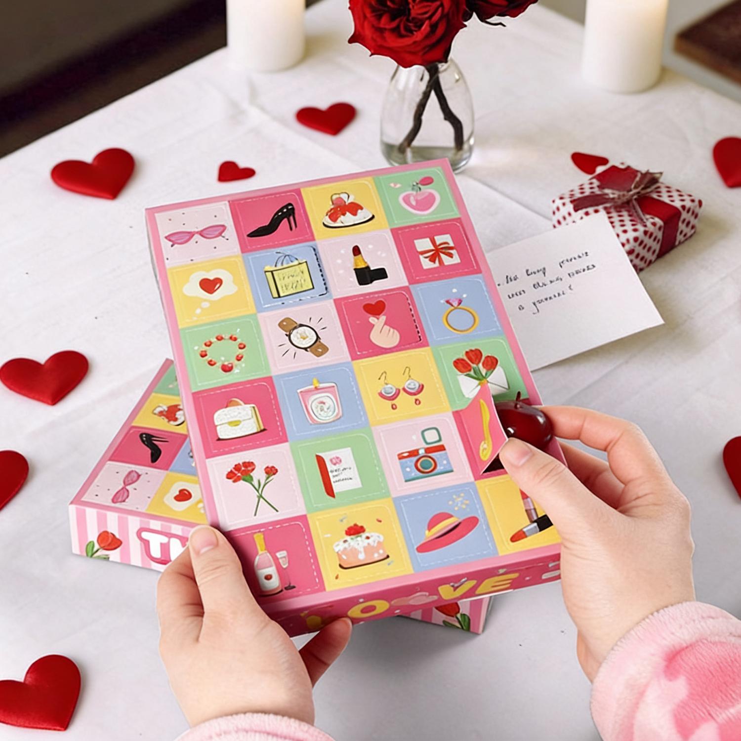 10 Valentine's Day Calendar Boxes With 24-day Countdown, Pink Gift Boxes DIY, 24-slot Empty Countdown Boxes, Suitable For Weddings And Valentine's Day Supplies