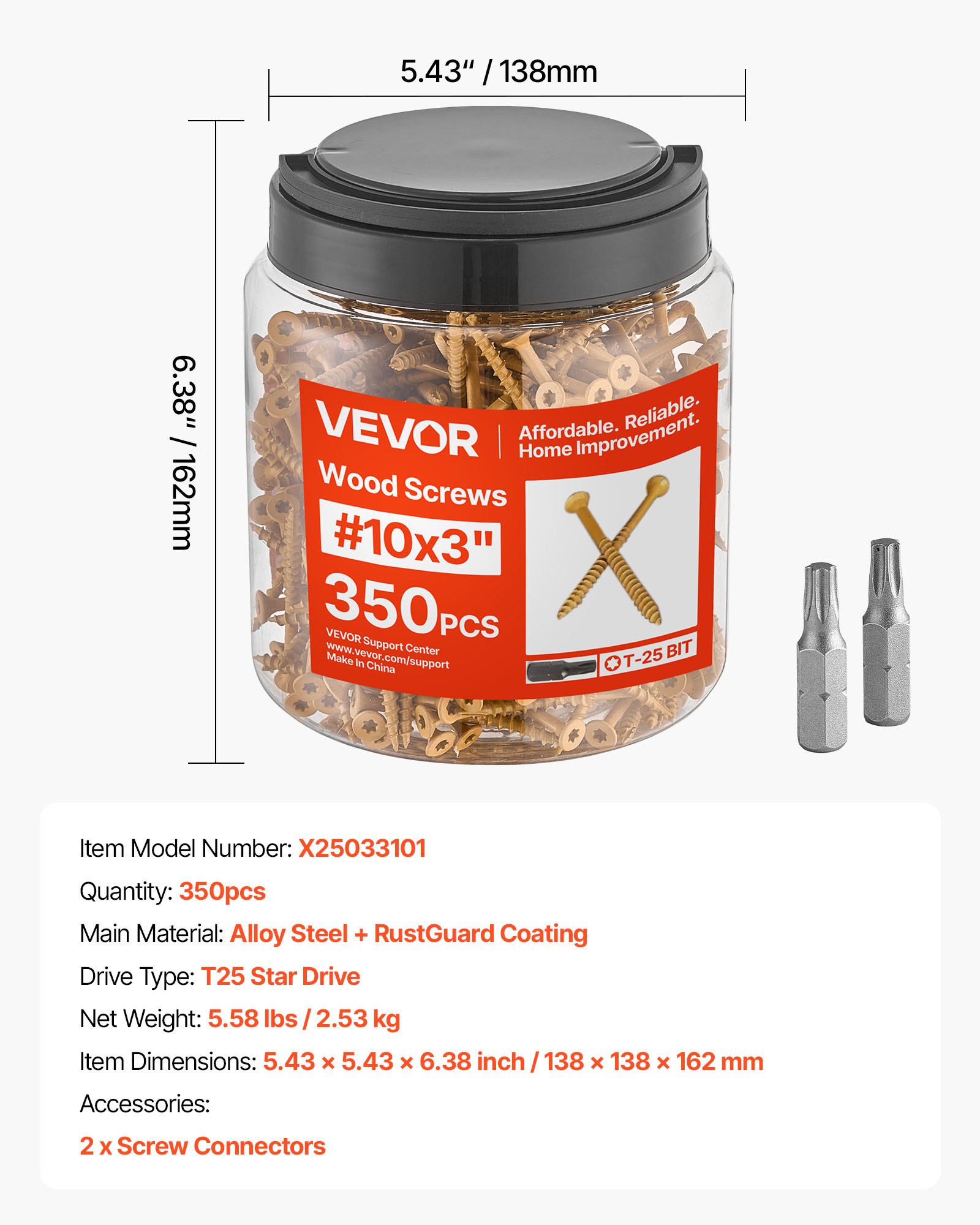 10 Wood Screws Anti-Rust 3-Inch Outdoor Deck Screws 350PCS T25 Torx Star Drive