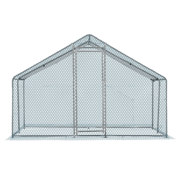 Features: 1. Spacious Living Area: Offers a generous 10 x 10 ft space, ensuring your animals have plenty of room to move, play, and rest comfortably in a natural setting. 2. High-Quality Construction: Built with a sturdy steel frame, coated for rust resistance with a galvanized finish, ensuring stability and durability through various weather conditions. 3. Weather-Resistant Cover: Equipped with a 180g PE waterproof cover that offers high resistance to sun and water, protecting your animals from the elements and extending the lifespan of the coop. 4. Durable Hexagonal Wire Mesh: Features a plastic-coated hexagonal wire mesh made from galvanized wire, providing a robust barrier that prevents escapes and protects against predators. 5. Secure Lockable Door: Designed with a latch-equipped door for added security, facilitating easy access for cleaning and feeding while keeping your animals safe.