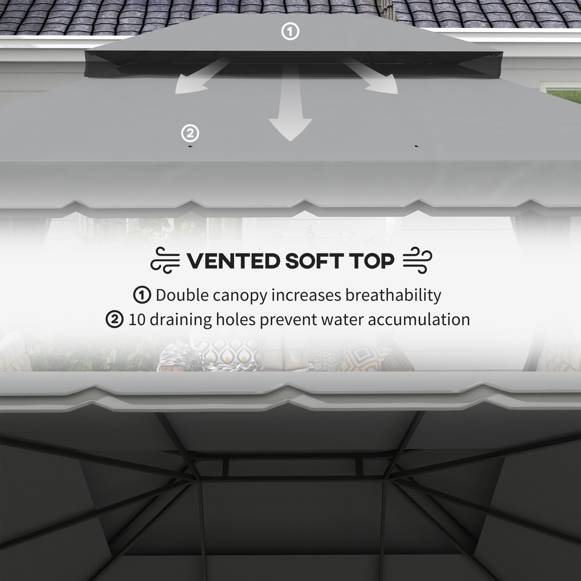 10' X 13' Patio Gazebo W/ Aluminum Frame Double Roof, Outdoor Gazebo Canopy Shelter With Netting & Curtains, Gray