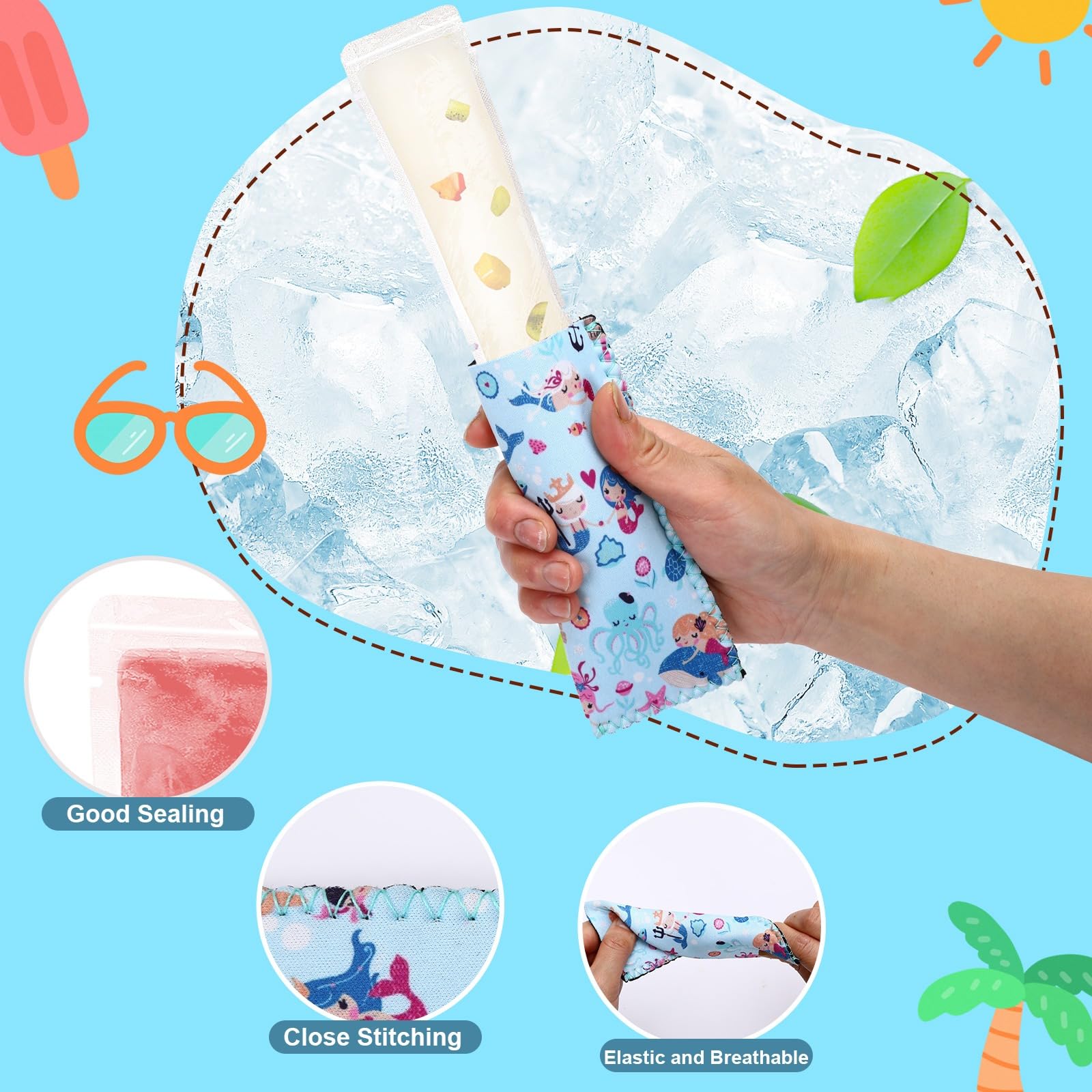 100 Disposable Ice Popsicle Bags With 2 Popsicle Sleeves, Neoprene Freezer Ice Pop Holder And Freezer Tubes With Zip Seals For Snacks, Yogurt Sticks Fruit Smoothies Comes With A Funnel Clearance