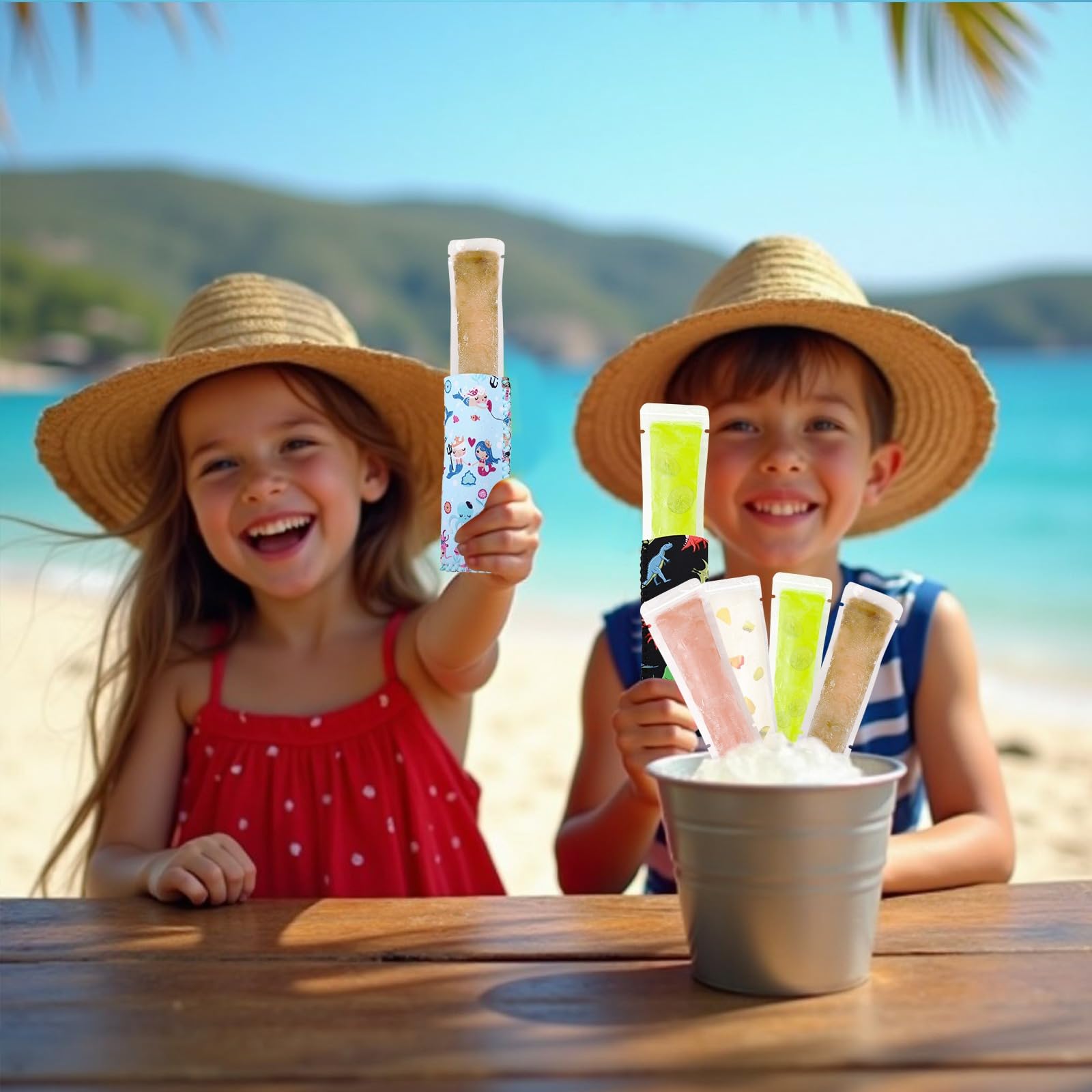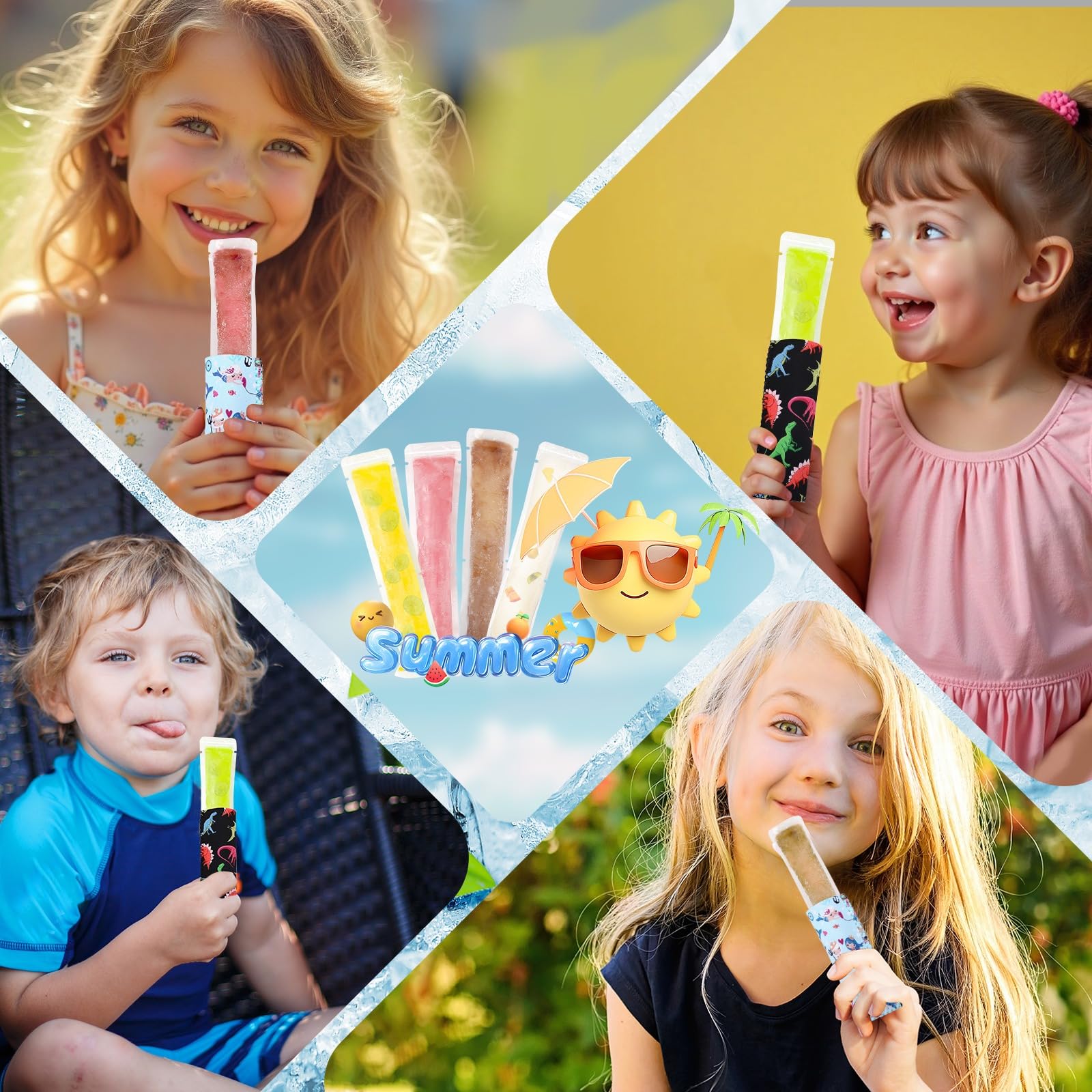 You will receive 100 pieces popsicle bags and 2 pieces popsicle sleeves, which are made of reliable materials. You can add yogurt, fruit juice and milk to make delicious and good-quality snacks, and there are enough for you to enjoy the fun of making snacks with your children