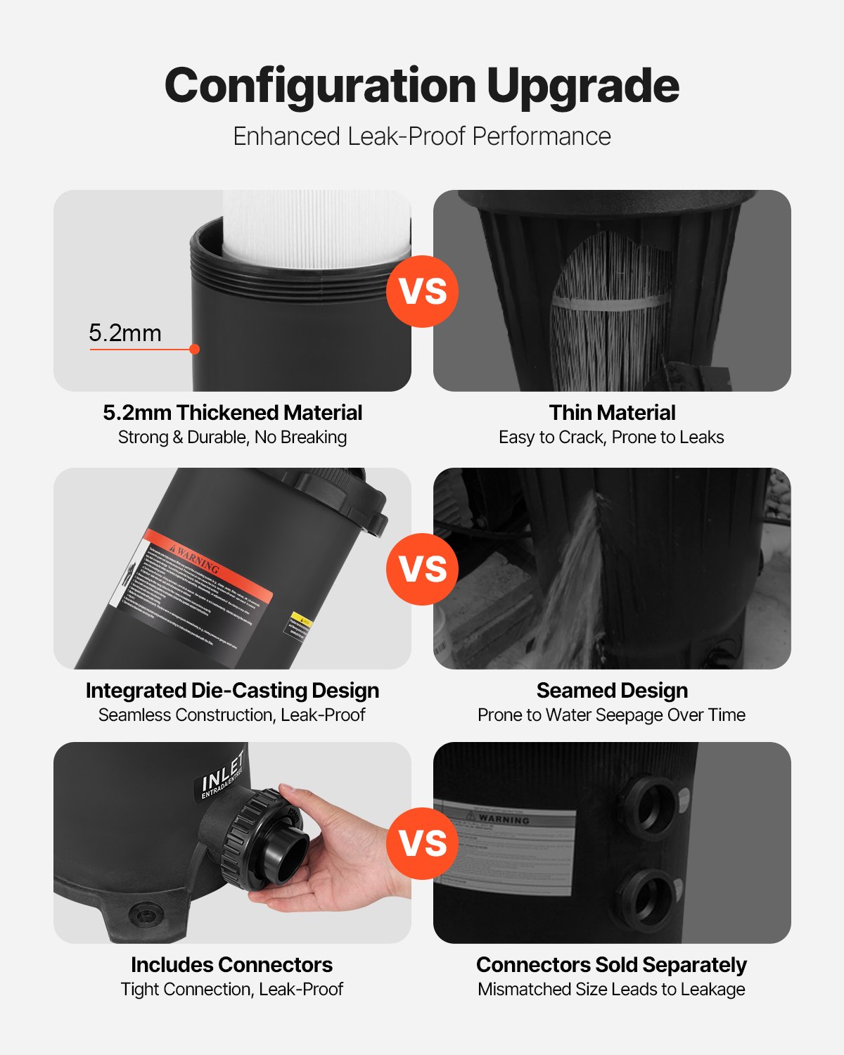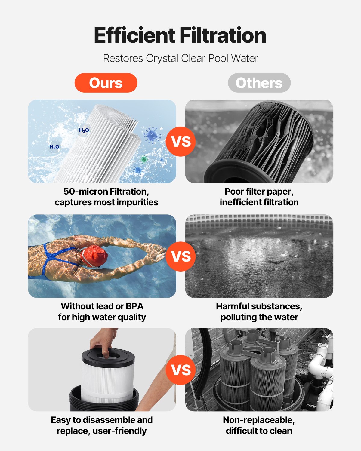 Durable & Sturdy: This pool cartridge filter features a PP + fiberglass outer shell with an increased wall thickness of 5.2mm, providing strength and durability. It easily withstands fluctuating outdoor weather, reducing the risk of leaks caused by aging or cracking.