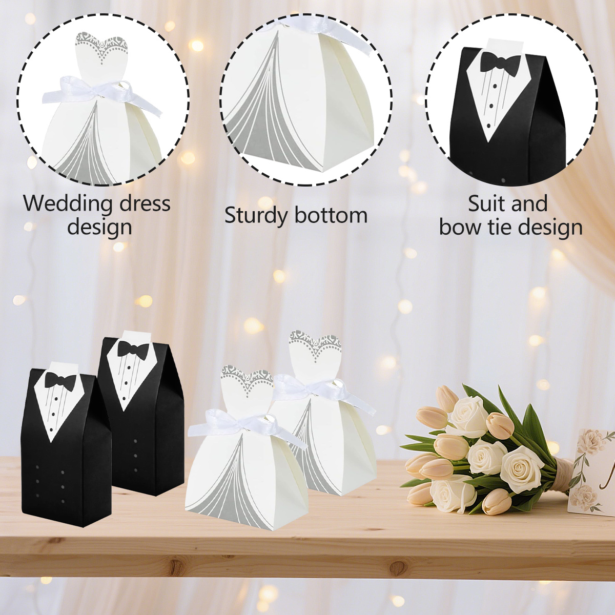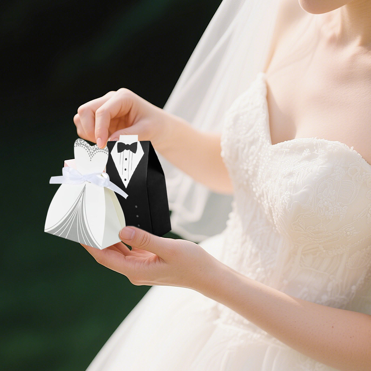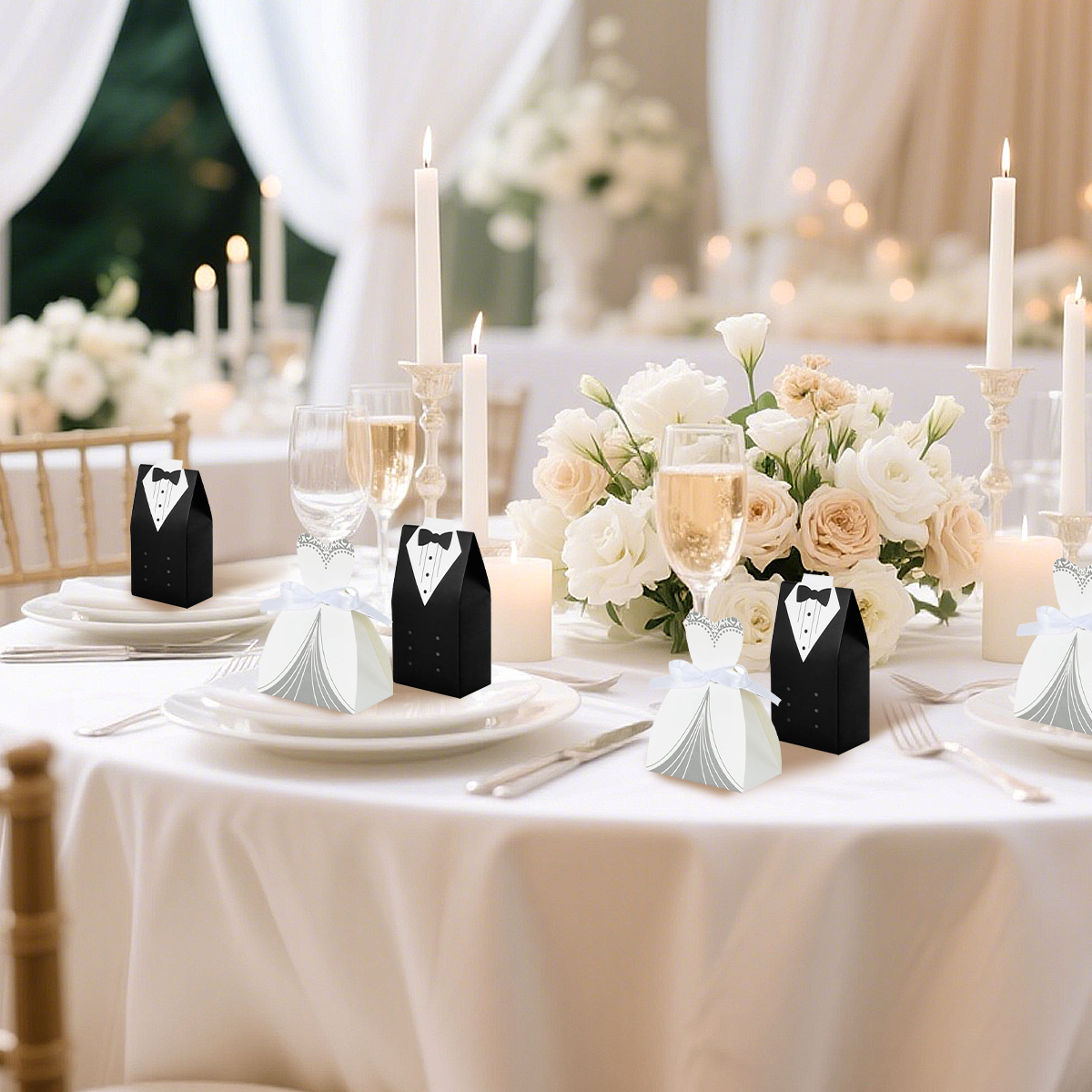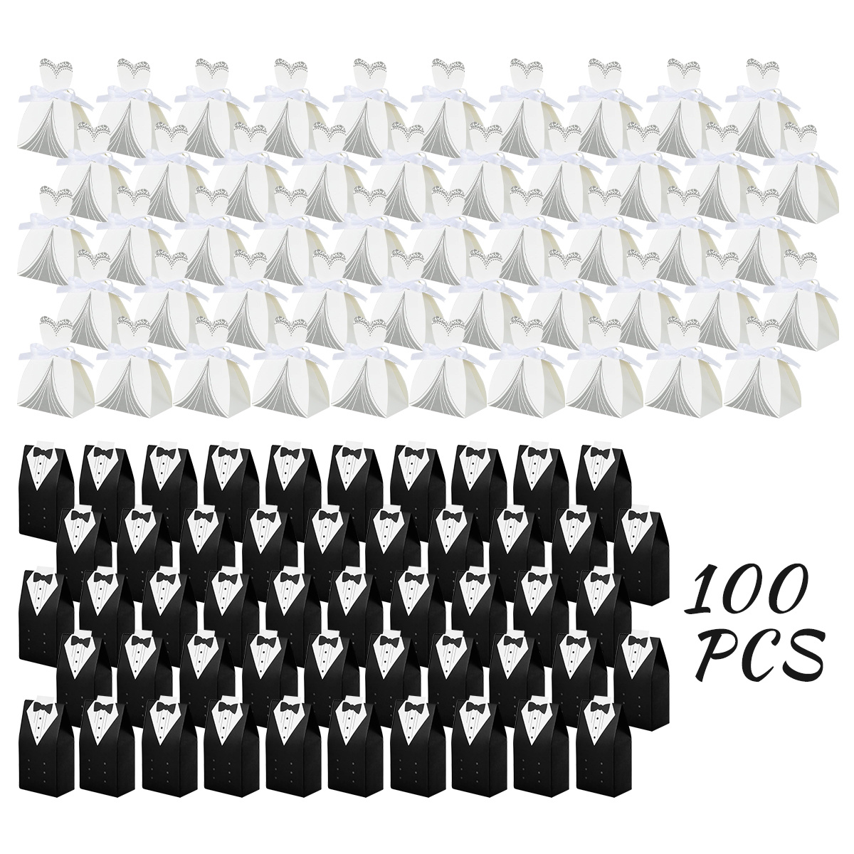 100 Wedding Favor Candy Boxes, Dress And Tuxedo Candy Chocolate Gift Boxes, Paper Candy Boxes With Ribbons, Bridal Party Table Decorations, Suitable For Weddings, Christmas, And Anniversary Parties