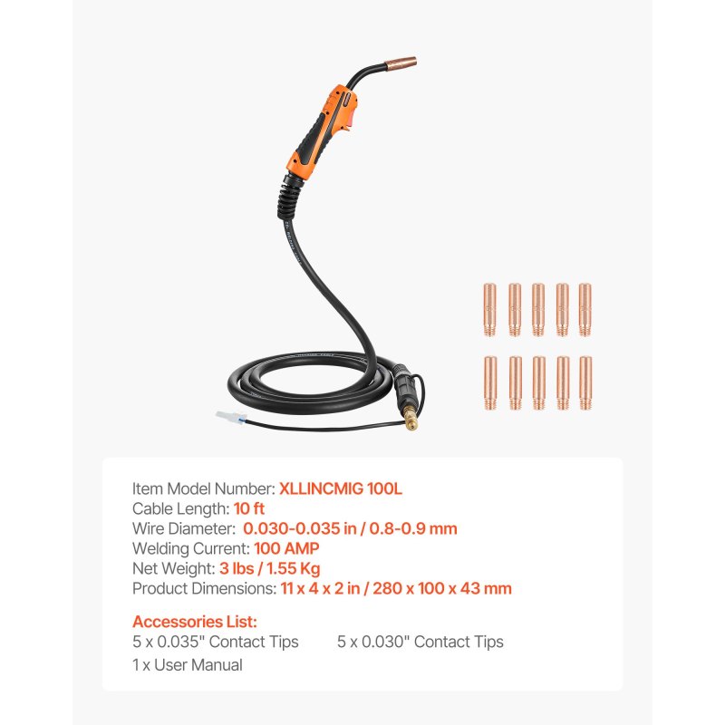 Rich Contact Tips: Pre-installed with one 0.030" contact tip. The package also includes 5pcs 0.030" and 5pcs 0.035" tips for quick replacement and flexible use across workshops, home projects, repair and maintenance tasks