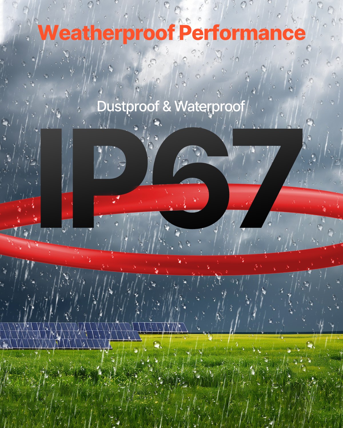 IP67 Protection: No worries about rain, dust, or dirt—this solar extension cable is built to handle it all! With IP67 protection, it works reliably in all kinds of outdoor conditions, so your solar system stays connected no matter the weather.