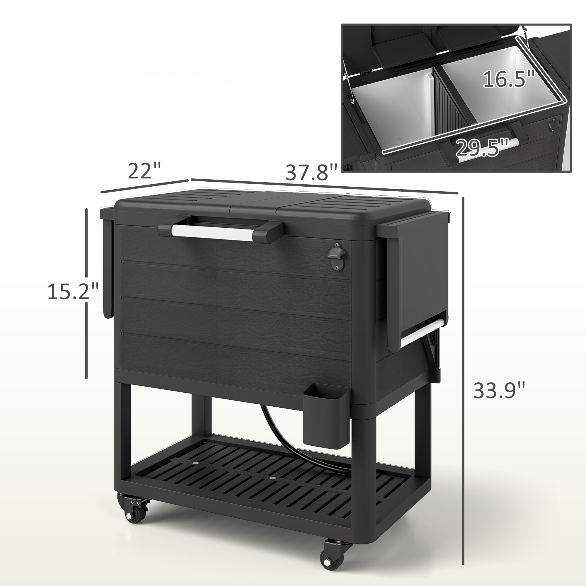 104 Quart Large Capacity Outdoor Cooler Cart, Patio Rolling Ice Chest With Bottle Opener Shelves Wheels, Black