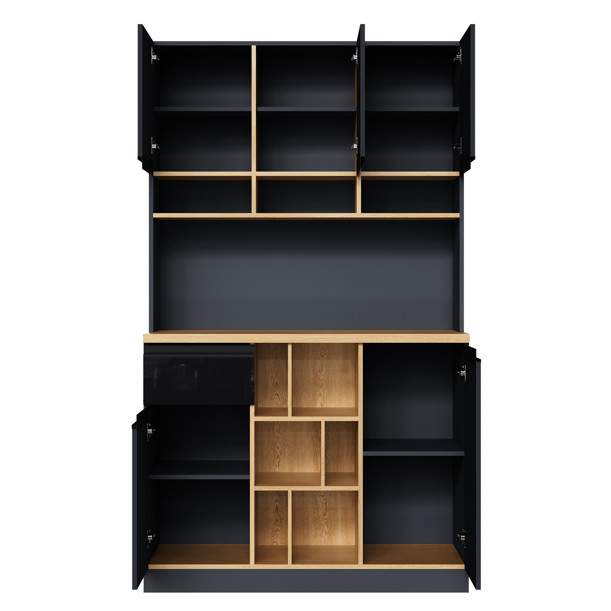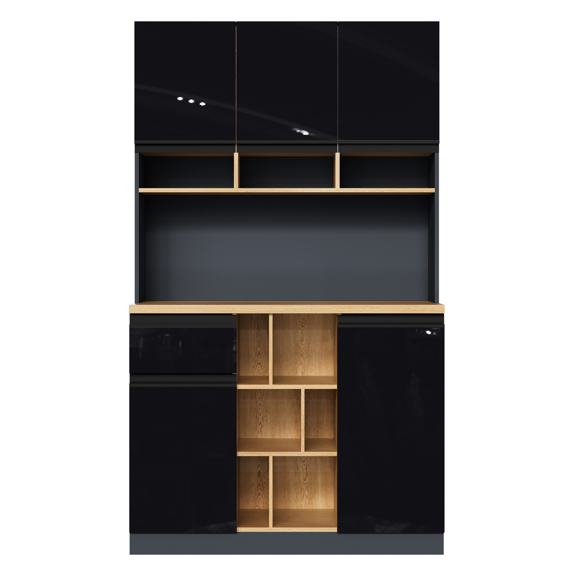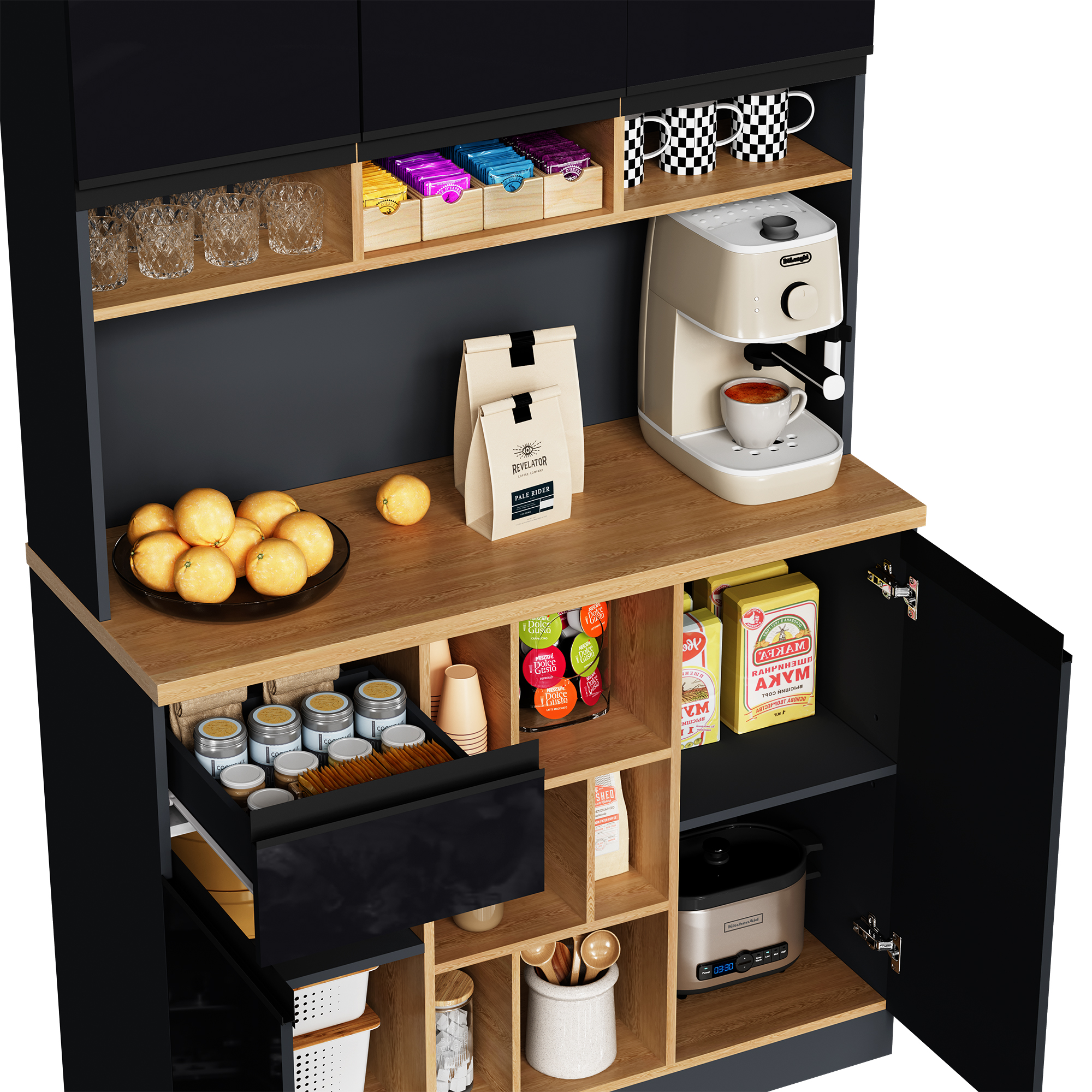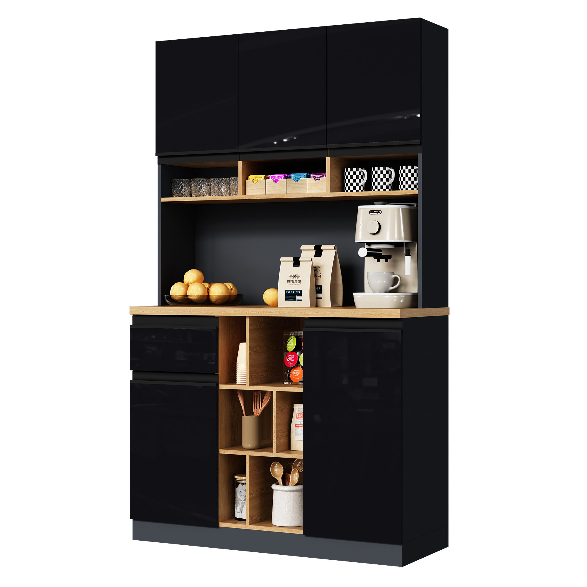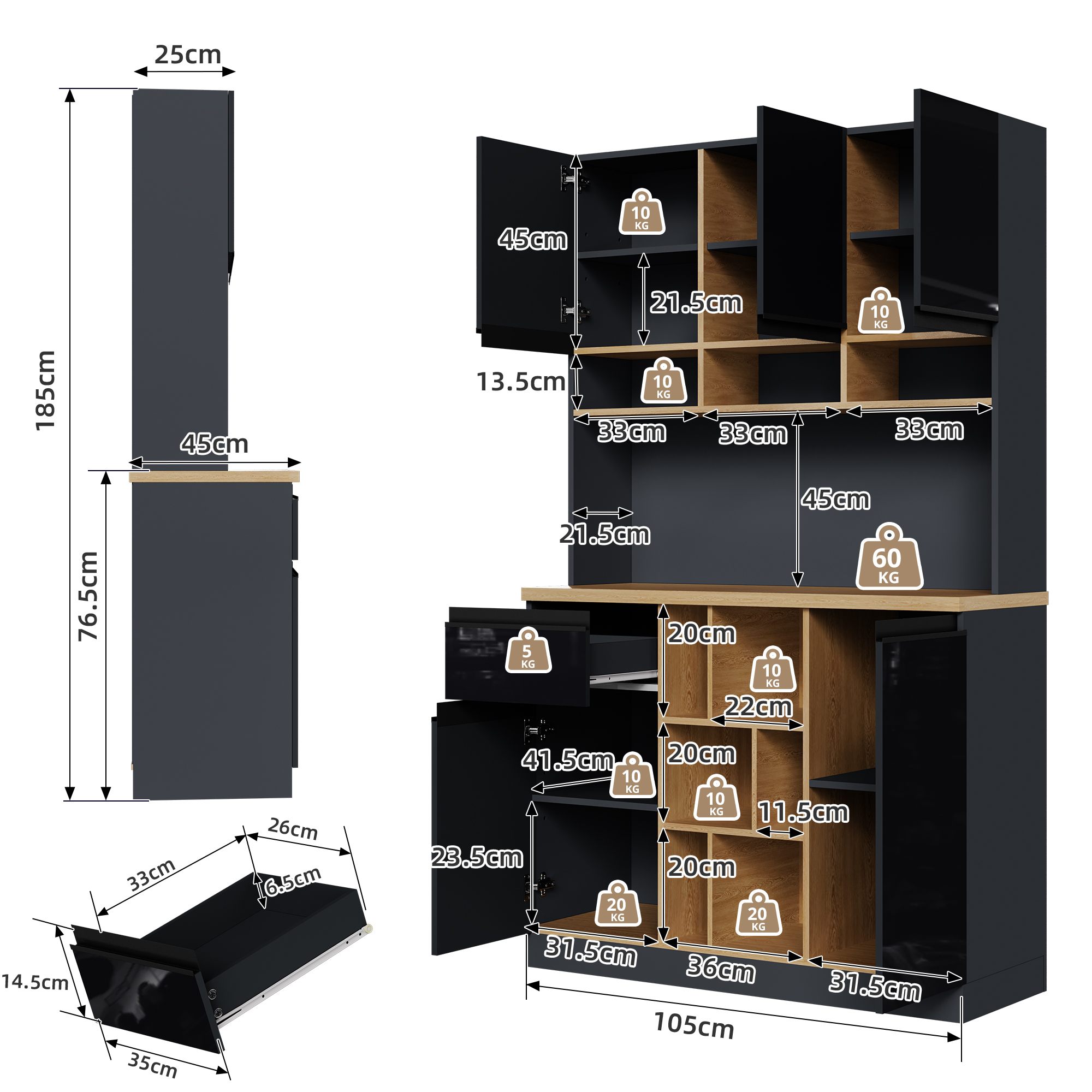 Product Name:105×45×185 cm, kitchen cabinet, buffet sideboard, high-gloss doors, adjustable shelves, drawers, open storage, tip-over protection, suitable for kitchen, dining room, and living room