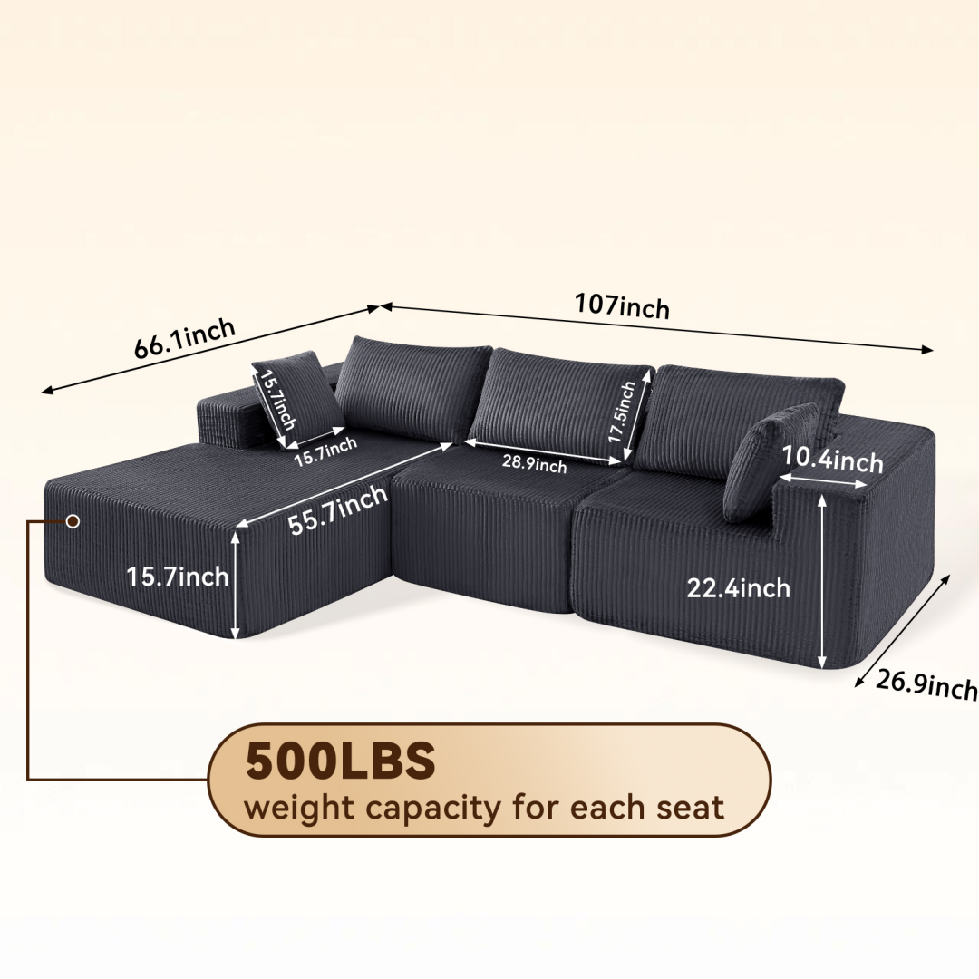 No installation required, ready to use upon disassembly: Boneless structure design. After unpacking, gently tap the sofa components and let it stand for 72 hours to regain its full shape. Say goodbye to the complex assembly process, saving you time and effort