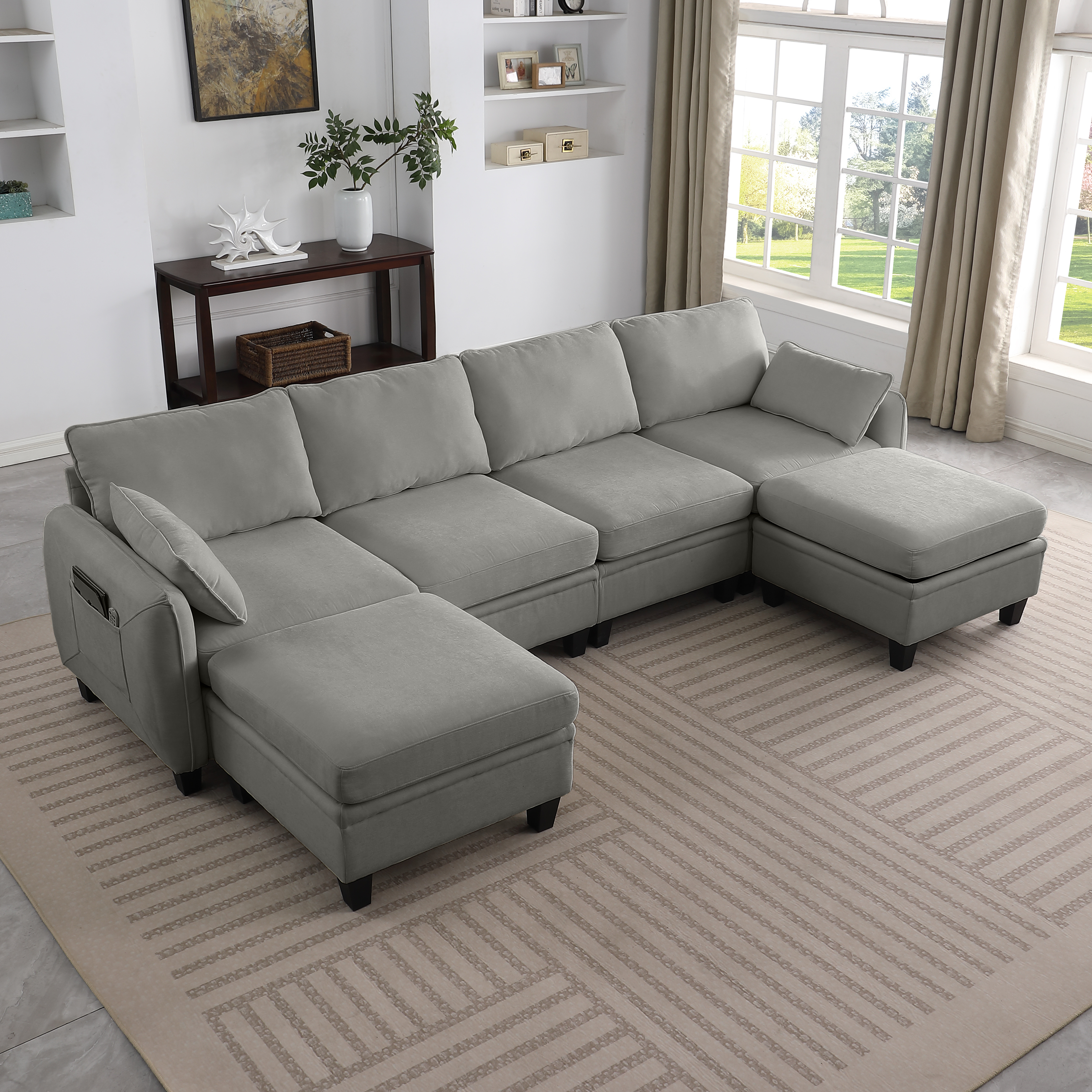 Product Name:109 Inch DARK GREY Chenille Modular Sectional Sofa, L-Shaped Cloud Couch with Storage Ottoman, DIY Combination for Living Room